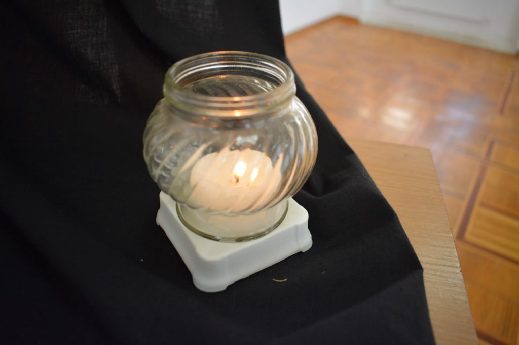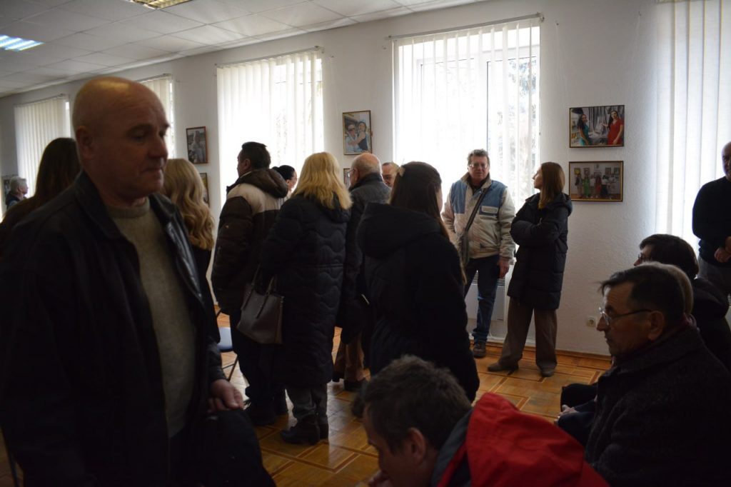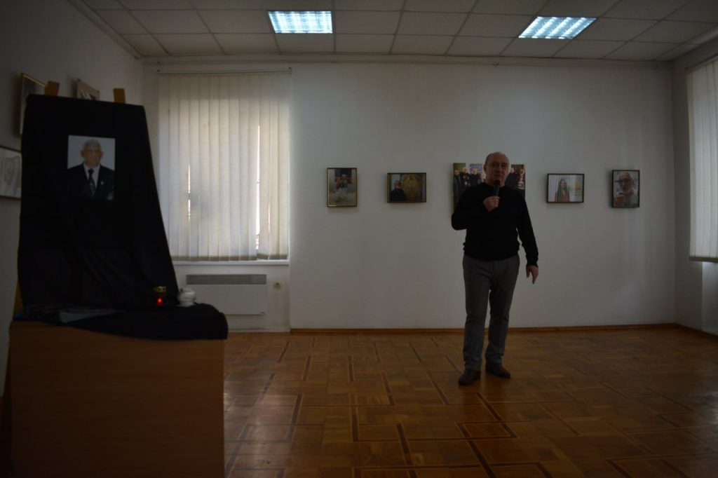 Виставка відкрилася хвилиною мовчання. На мольберті, обтягнутому чорною матерією було фото пана Василя. Поруч стояли дві лампадки та знаходилися каталоги зі знімками, які міг забрати з собою кожен бажаючий.