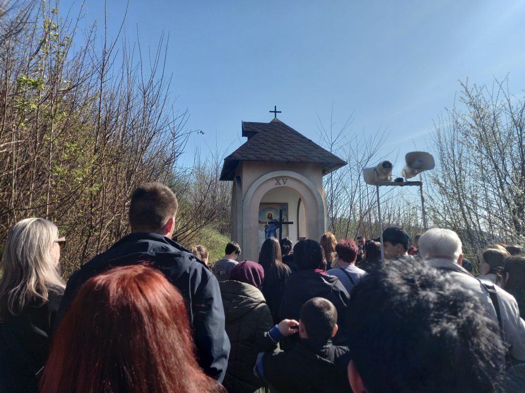О 15 годині у Вербну неділю вірники зібралися біля першої каплиці Хресної дороги, яка знаходиться на горі Гурка. Настоятель римо-католицького костела святого Августина отець Владислав зауважив, що дороги є різні: близькі і далекі, піші і на транспорті, для душі і тіла. «А зараз ми стаємо на початок предивної дороги, якою йшов наш Спаситель, обтяжений хресним деревом. Ідучи разом з Богом, хочемо навчитися від нього доброї і щасливої дороги в нашому земному житті. Нехай Хресна дорога стане для нас новим кроком на шляху до Божої благодаті та миру в нашому серці. Нехай наша віра допоможе нам знайти світло у темні часи», – звернувся до вірних священник.