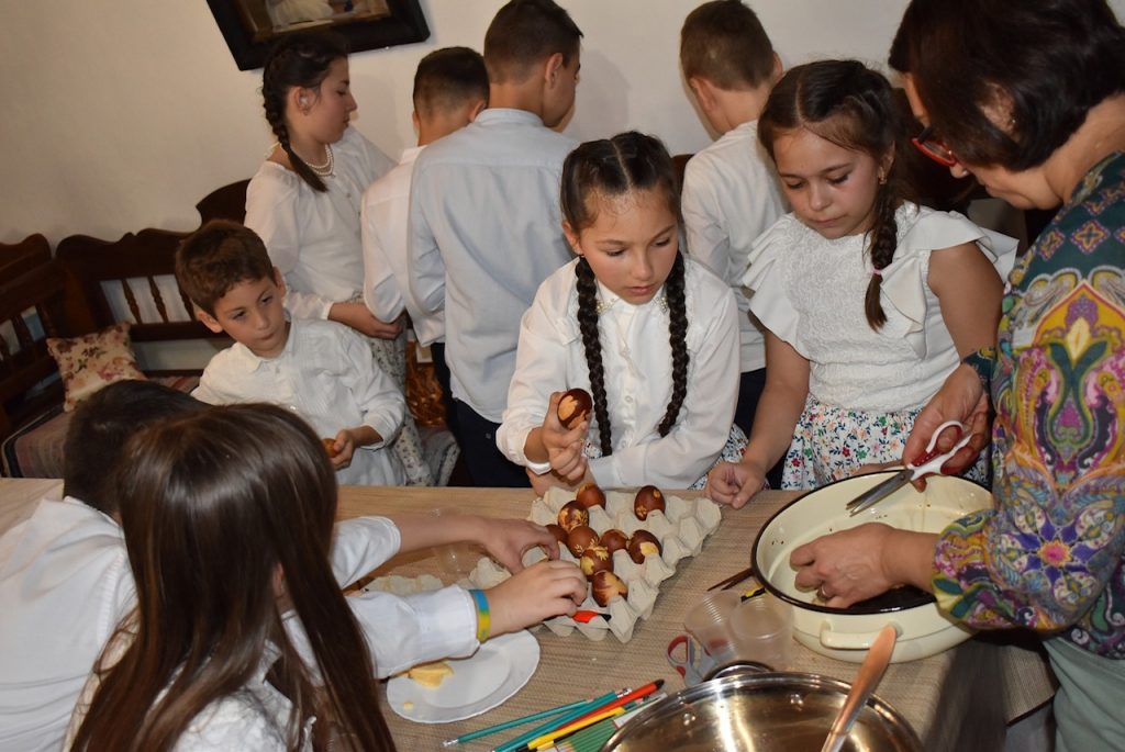 Атмосфера в музеї нагадувала справжню великодню майстерню: запахи диму, цибулиння і свіжої випічки створювали тепле й затишне тло для занурення у народне мистецтво. Діти також мали змогу опанувати техніку дряпання – коли орнамент наноситься шляхом подряпин на пофарбованій шкаралупі, та воскову техніку, де писанка вкривається воском і прикрашається золотим пилом.