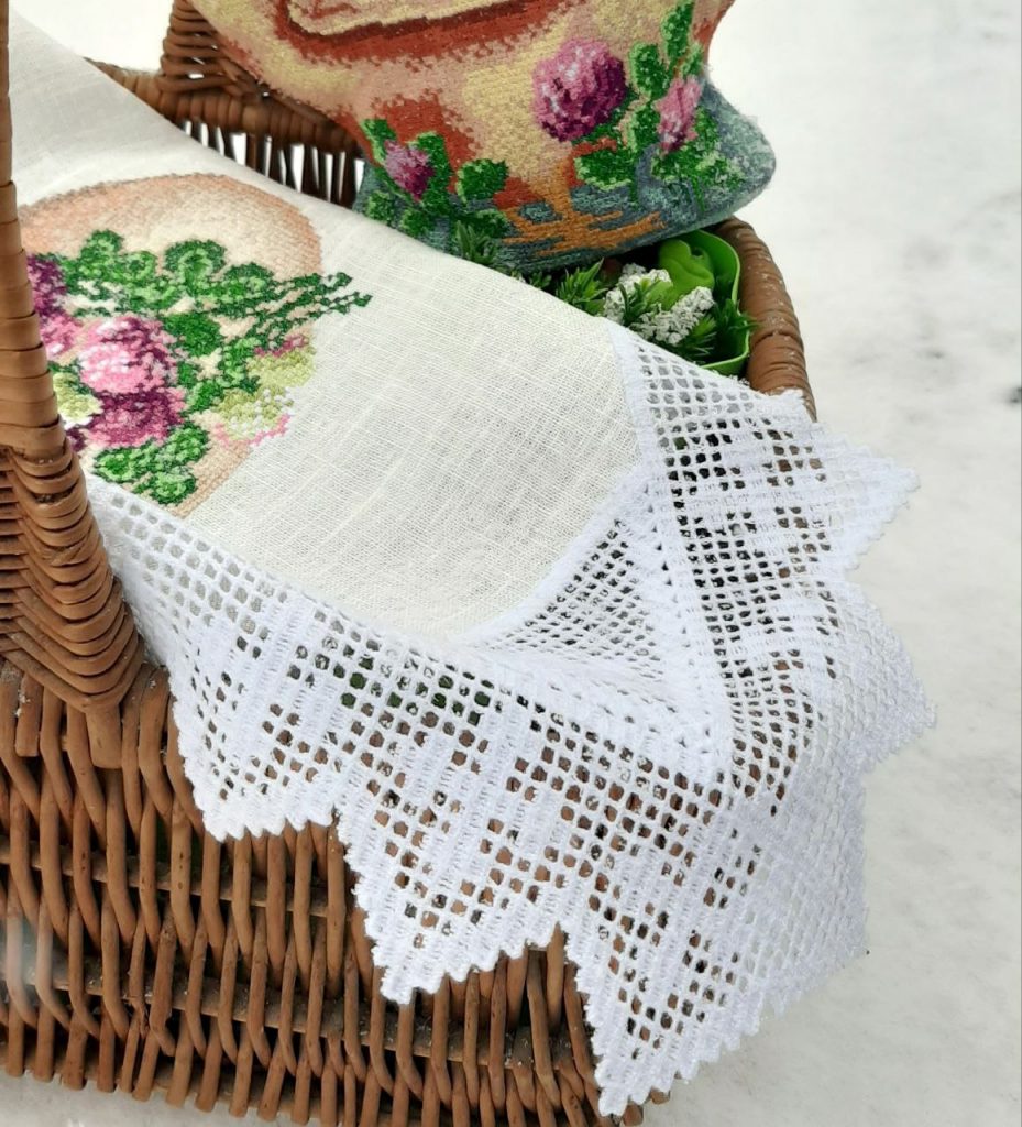 «Це скатертина для столу. Вона рясно всіяна маками та волошками. Працював над нею довго, майже 5 місяців. Найменші ж вироби – сантиметрів 30 у діаметрі. Але маю ще більш крихітні – це пов’язки для писанок. Впоратися з таким виробом можна максимум за годину», – стверджує закарпатець.