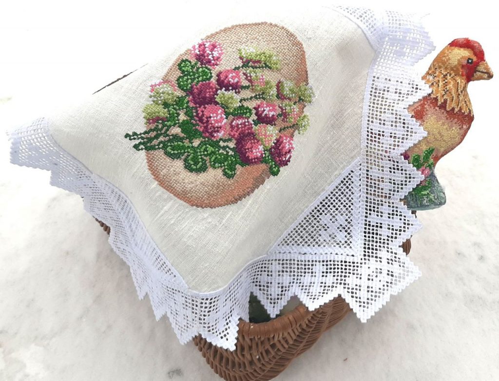 Мукачівець вишиває великодні серветки