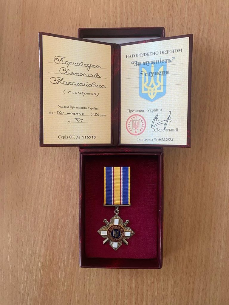 Учора Вишківський селищний голова Гайович Ярослав Іванович разом з головою Хустської ОВА Сабадошем Віктором Михайловичем та військовослужбовцями Хустського РТЦК та СП посмертно вручили Орден “За мужність” родині полеглого Героя – Корнійчука Святослава Миколайовича.