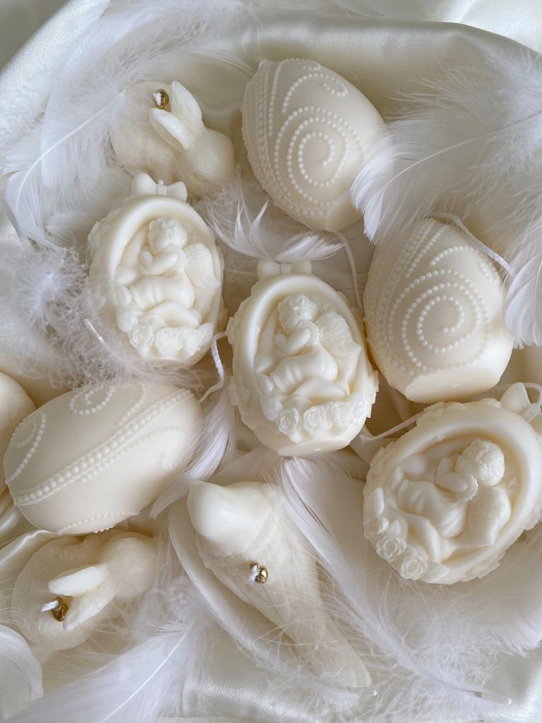 «Люблю загалом форми різних тваринок та геометричні фігури. Свічкові квіти не роблю, це не моє. Хоча дехто з умілиць створює справжні шедевральні свічкові флористичні композиції. Та мені більше імпонує щось миле і невинне. Наприклад, до Великодня маю серію писанок, курчат, півників, зайчиків, янголів. До Різдва створюю мандарини, ялинкові кульки, ялиноньки, маленьких Санта Клаусів, оленів, дзвіночки. Маю в доробку і сердечка, і пірамідки, і милих кумедних звірят. Загалом – більше 50 найменувань абсолютно різних виробів», – зазначає закарпатка.
