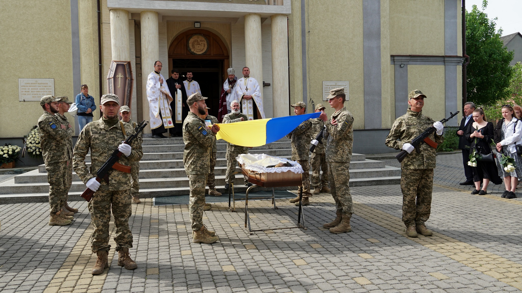 Вчора, 25 квітня в соборі Успіння Пресвятої Богородиці у Мукачеві попрощалися із загиблим захисником, воїном 128 Закарпатської бригади 35-річним Андрієм Задорожним. Родина, друзі, знайомі, побратими, однокласники, колеги прийшли, аби віддати шану полеглому. Люди навколішках проводжали Героя в останню дорогу.