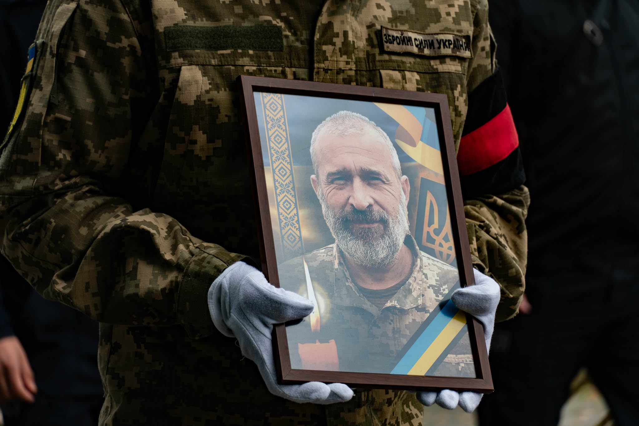 Після заупокійної літургії жалобна хода пройшла центральними вулицями міста до Пагорба Слави, де Віктора Зацариніна поховали з військовими почестями.