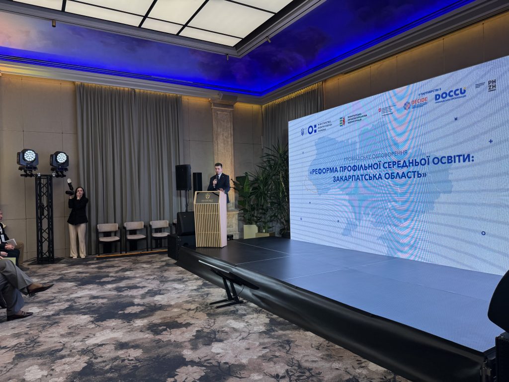13 травня в Ужгороді відбулося громадське обговорення реформи профільної середньої освіти та особливостей її впровадження в Закарпатській області. Захід організовано Міністерством освіти і науки України в партнерстві зі швейцарсько-українським проєктом DECIDE «Децентралізація для розвитку демократичної освіти» за сприяння Закарпатської ОВА.
