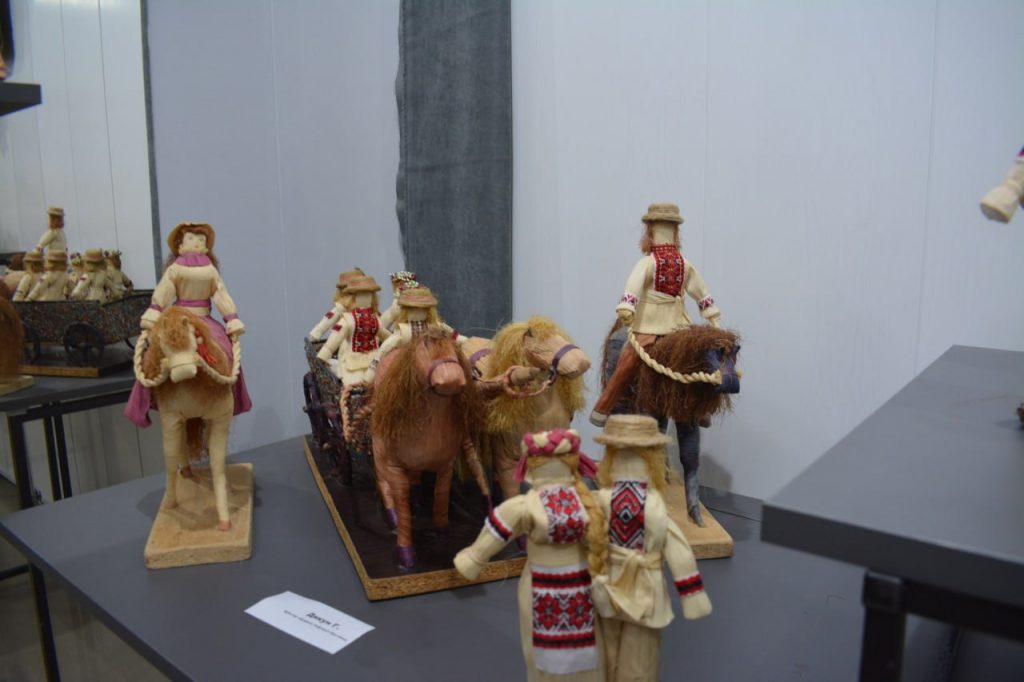 Дійсно виставка виявилась багатою на справжні народні родзинки. Чого тільки варті роботи з кукурудзяного листя майстрині з Вишкова Ганни Дикун. Колись у селі багато хто займався плетінням, наразі одиниці. Переважно плетуть сумочки і простенькі вироби, а от пані Ганна зуміла створити дійсно неперевершені міні-скульптурки. Це і люди, і хатинки, і коні, і овечки, і багато іншого.
