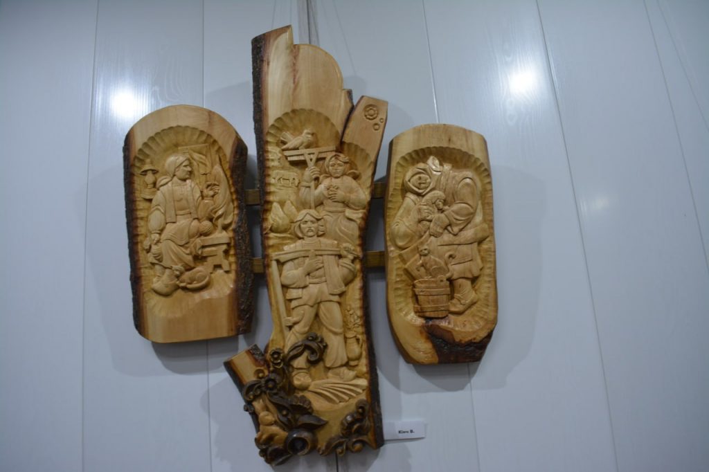 Також дуже витончену колекцію виробів представив художник-різьбяр Віталій Кінч із Ужгорода. Його роботи – це справжні полотна на дереві, щоправда, писані тесаком та іншими інструментами. Пан Віталій, між іншим, не просто творить сам, але й навчає цьому молодь. Нещодавно він відкрив першу на Закарпатті школу художньої різьби по дереву для дітей.