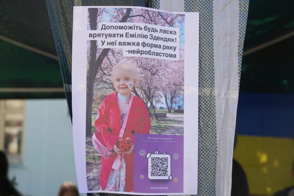 Колеги та студенти батька Емілії, викладача Ужгородського торговельно-економічного коледжу, організували захід на Театральній площі, щоб зібрати кошти на порятунок дитини.