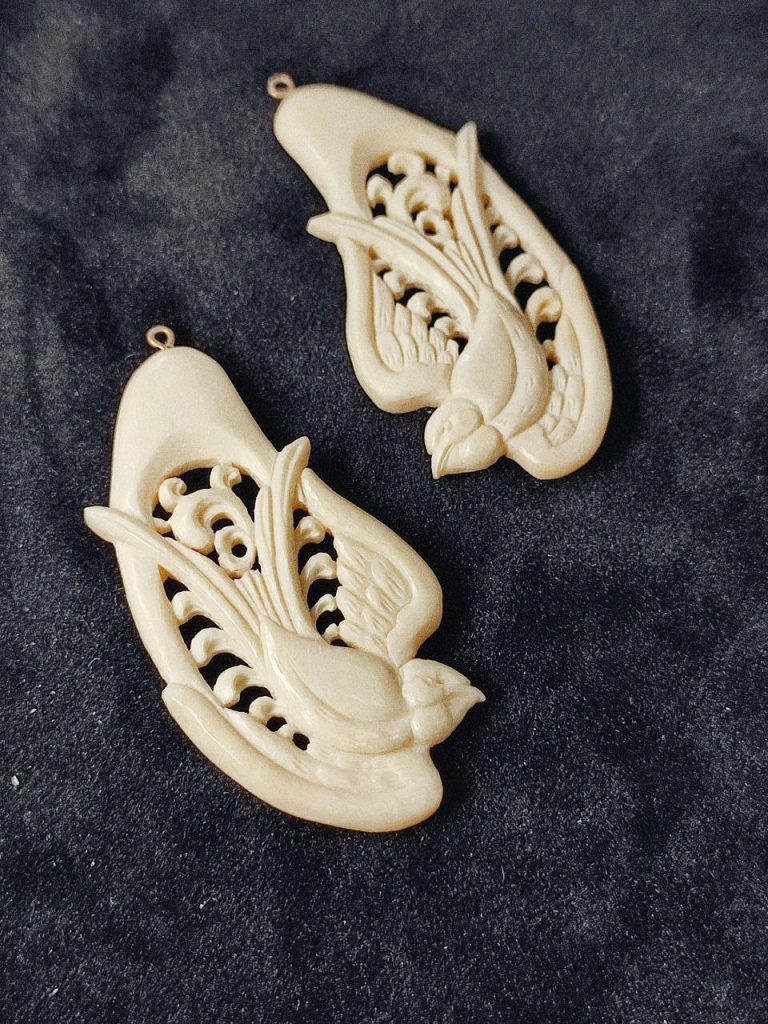 «Каміла в мене велика поціновувачка гусей. А моя мама завжди їх тримала. Тож мала донька улюблену гуску Олесю. Та птаха захворіла, і батько її зарізав. Тоді донька попросила зробити з її кісток для неї сережки. Не міг же я власній дитині відмовити. Хоча в основному працюю з нейтральним матеріалом, тобто з непотрібними нікому кісточками. Саме це вбачаю головною перевагою. Працюється без жодних емоцій, а кістки маю завжди безкоштовно. Їх, між іншим, деколи мені приносять навіть друзі. Хтось радіє квітам, а я, виходить, кісткам», – зізнається майстер.