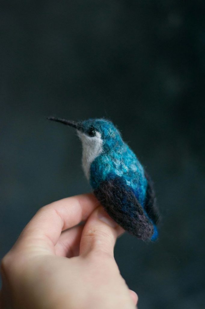 «Усе залежить від натхнення, наявності підручних матеріалів. А їх замовляю через інтернет, тож треба чекати, поки доїдуть. Наголошу, що у валянні немає швів, не можна користуватися клеєм. Це – неймовірно клопітка робота. При сухому валянні треба користуватися спеціальними голками, аби зчіплювати між собою волокна вовни. Якщо хтось не бачив процесу, то зізнаюся – нитками користуватися не можна. А от при мокрому, береться вода, мило і матеріал «склеюється» між собою шляхом тертя. Для валяння треба купувати спеціальну вовну. Вона продається вже пофарбованою. А сам процес починається саме з підготовки до роботи цієї вовни, роз’єднанні волокон. Можна робити голову птаха чи тваринки окремо від тіла і потім їх з’єднувати, а можна весь виріб «обвалювати» одночасно. Загалом це все захоплює і мені дуже подобається», – запевняє хустянка.