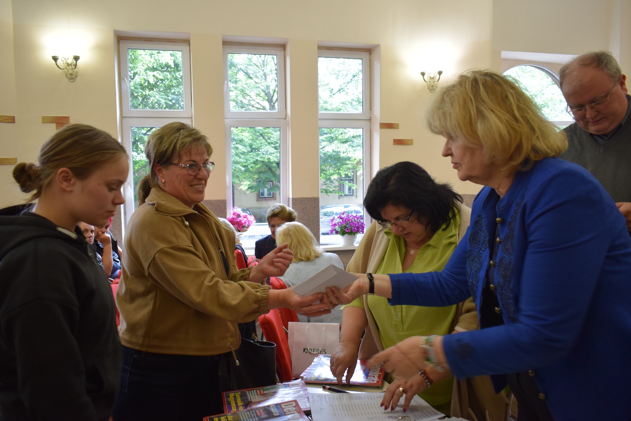 Після заходу Ольга зазвичай відвідує Берегівську громаду та особисто передає допомогу. На превеликий жаль, цього року вона не змогла приїхати, тому кошти передали її друзі: Каталін Шміттней Макрай, Каталін Гампел та Клара Бейреш.