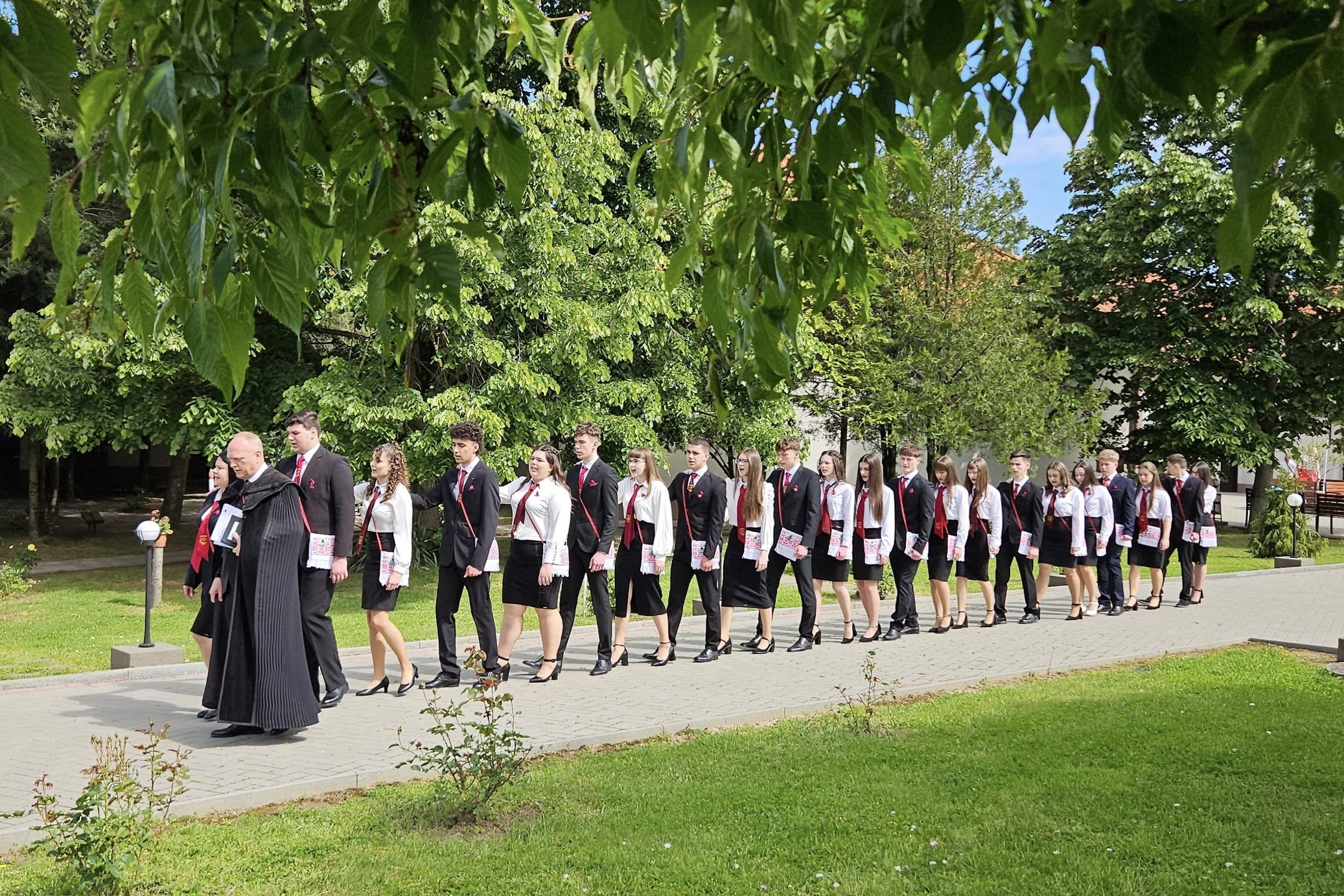 Відтак представники Петра Мартін та Ференц Конрад Нойбауер передали символічну естафету Сінтії Молнар та Тібору Ціблі. Цим символічним жестом випускники символічно надсилають послання наступникам, що відтепер на них чекатимуть серйозні завдання, нові виклики і що в наступному навчальному році вони повинні стати взірцями для учнівського колективу.
