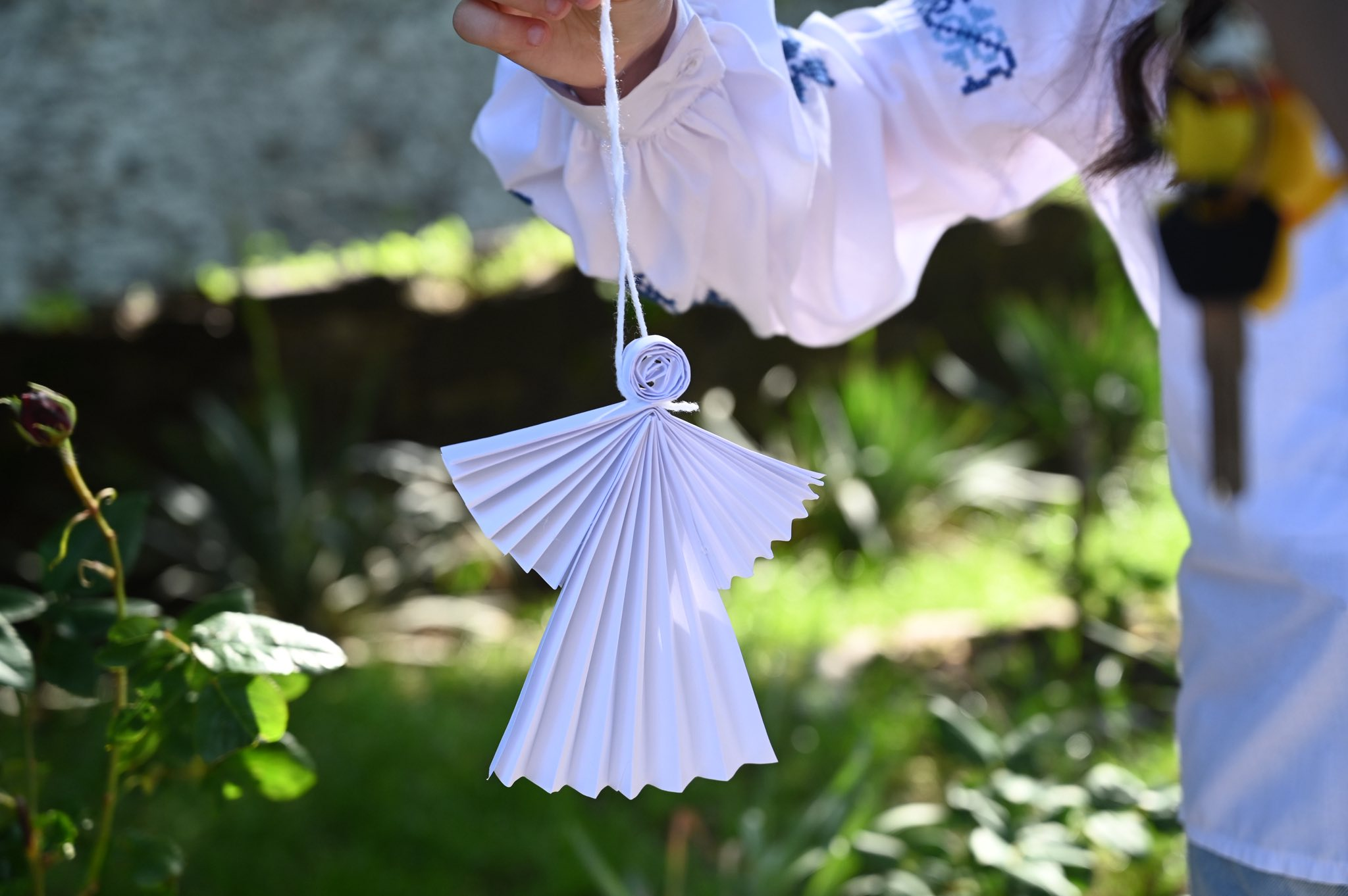 Щороку на символічному Дереві пам’яті в Ужгородському скансені, на жаль, з’являється все більше паперових янголів. Традиційно їх власноруч виготовляють місцеві діти.