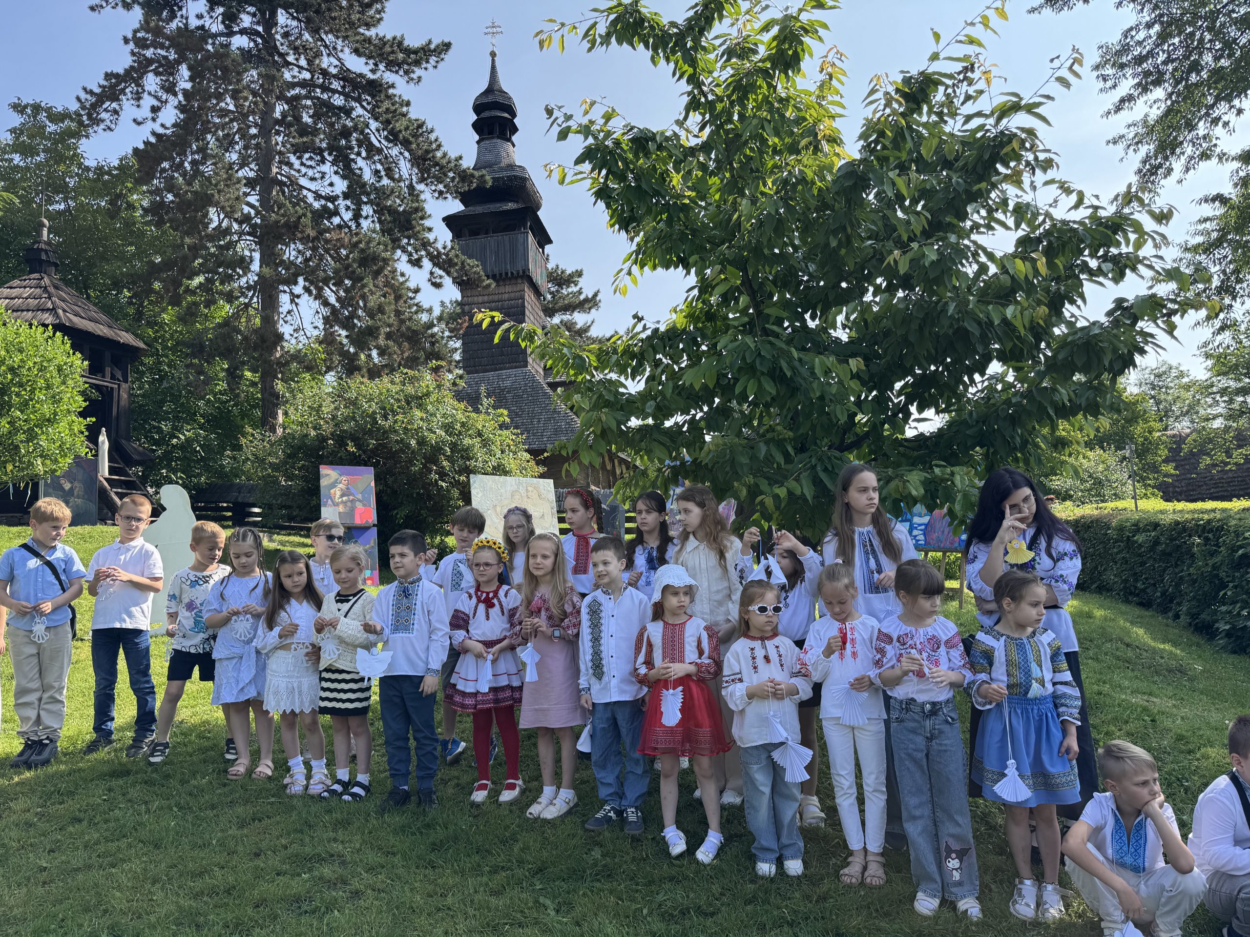 У межах акції в скансені відкрили тематичну експозицію дитячих малюнків, плакатів та інсталяцію з покинутими іграшками біля старовинної школи. Особливо зворушливою стала виставка дитячого одягу минулих століть – як міст між поколіннями, що свідчить про тяглість дитинства, яке повинно бути щасливим і безпечним.