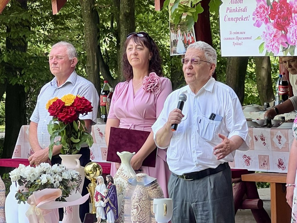 Керівник консульства Угорщини в Берегові Іштван Дєбнар у своєму виступі зосередився на посланні Дня святої Трійці – відродженні та оновленні. Він відзначив, наскільки важливе це послання у сучасному світі, оскільки “ми пережили важкі часи, і хто знає, скільки негараздів чекає на нас попереду”. Дипломат наголосив, що угорці Закарпаття продовжують бути активною та згуртованою громадою, і що потрібно вірити – багато хто повернеться на батьківщину, щойно труднощі минуть. Він запевнив присутніх, що угорський уряд продовжуватиме підтримувати збереження та існування закарпатської угорської громади.