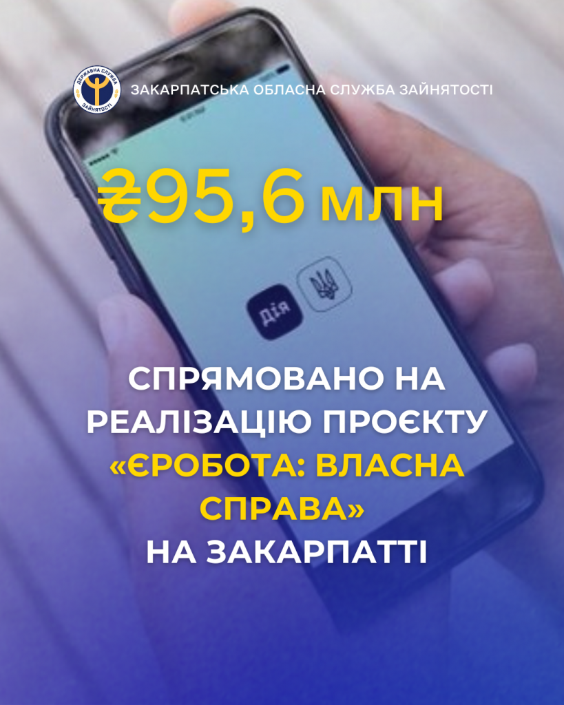 На Закарпатті на реалізацію проєкту «єРобота: Власна справа» спрямовано 95,6 млн грн.