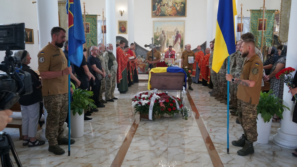 Сьогодні у храмі святих апостолів Петра і Павла провели в останню дорогу бійця військової частини 3057, «Азов» Національної гвардії України Дениса Білого. Батько, рідні, дівчина, друзі, колеги та побратими прийшли, аби віддати шану та попрощатися із загиблим Героєм.