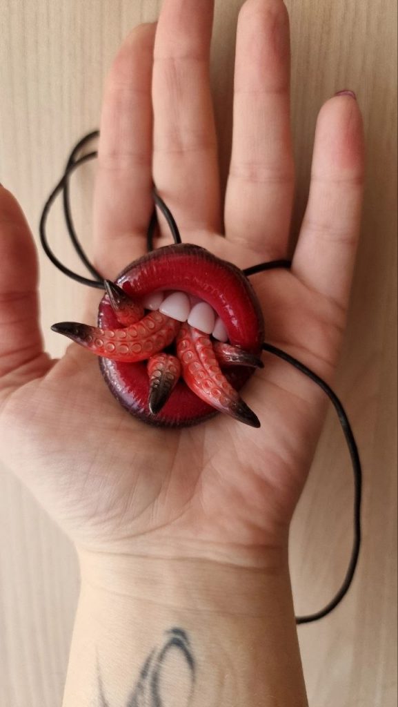 Зубата квітка, браслет із губами, кулон із язиком, брошка зі щелепами. Здавалося б, щось нереальне. Але ж ні. Валентина Чоповдя з Хуста створює незвичну біжутерію із полімерної глини. У її колекції дійсно цікаві речі і бажаючих одягнути такі дивні прикраси ще більше.