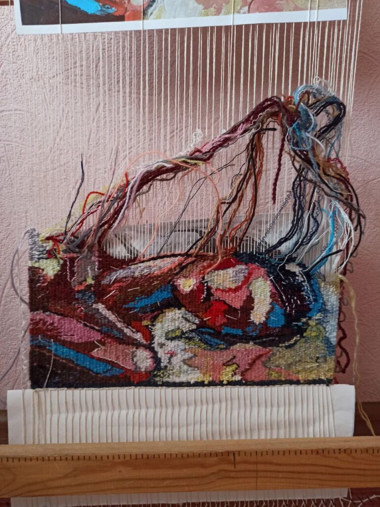«Колись моя бабуся вміла ткати килимки. Шкода, що не навчила мене. У нас навіть станок спеціальний був. Але потім батько його порізав на дрова. Я досі за ним шкодую. Саме бабця навчила мене різному рукоділлю – в’язанню, вишивці, макраме, шиттю. Не вміла вона тільки прясти. Я завжди тяжіла до народних ремесел, тож коли одного разу побачила на одній із виставок художників гобелени, запалилася. Авторкою була львів’янка. Ми познайомилися і вона дещо розповіла мені про техніки, дала інформацію, де можна опанувати ази. Я купила онлайн майстер-класи. Проводила їх жінка з Тернополя. Було дуже цікаво і я зрозуміла, що мушу спробувати. Раніше експериментувала з витинанками, декоративним розписом, ліпкою з полімерної глини. Тож гобелен для мене був невідомим, чимось новим і дуже захоплюючим заняттям. Фактично це – ткацтво, просто трохи не таке, яким займалися у давнину», – розповідає «Карпатському об’єктиву» умілиця.