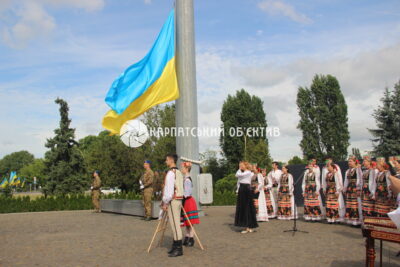 Церемонія проходила в супроводі почесної варти та дітей у національних костюмах. Під час виконання Державного Гімну синьо-жовтий стяг урочисто здійнявся на флагшток. Музичний супровід забезпечував Закарпатський академічний народний хор.