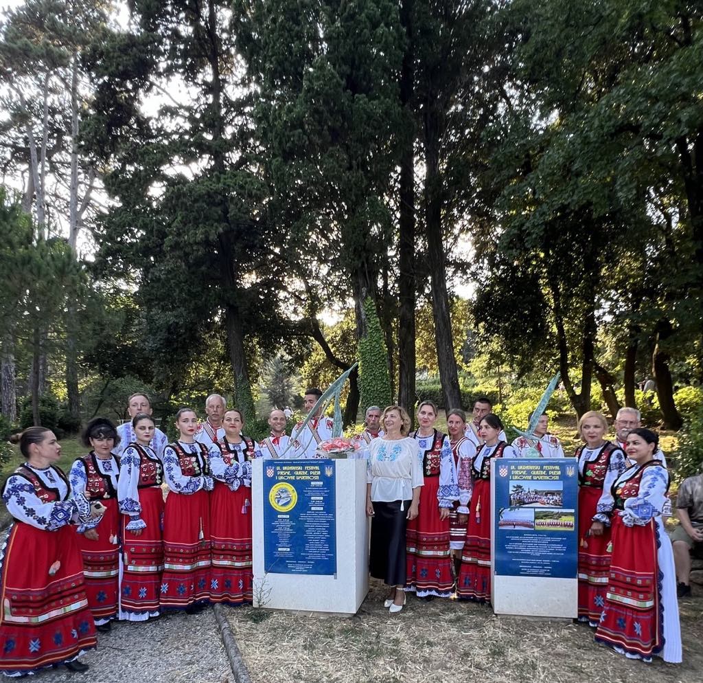 Яскравим завершальним акордом гастрольної поїздки Закарпатського народного хору в Хорватії став виступ колективу біля памʼятного знаку Івану Франку в м.Ловран на урочистому закритті IX Міжнародного фестивалю української пісні, музики та танцю в Рієці. На заході були присутні поважні гості – дружина посла України в Хорватії Ніна Кирилич, поважні члени журі фестивалю, голова Всеукраїнської Національної музичної спілки Петро Андрійчук, голова товариства «Рушняк» Володимир Провчі, учні української недільної школи із м.Загреб тощо. У події взяли участь також Заслужений народний хор України «Дарничанка» та народний хор «Княжа вольниця». Після вітальних слів колективи виступили з пісенними посвятами великому Каменяреві, який бував у Ловрані на лікуванні. Наскрізним лейтмотивом події стала знаменита «Червона калина», яка об’єднує всіх українців, де б вони не перебували у ці нелегкі часи.