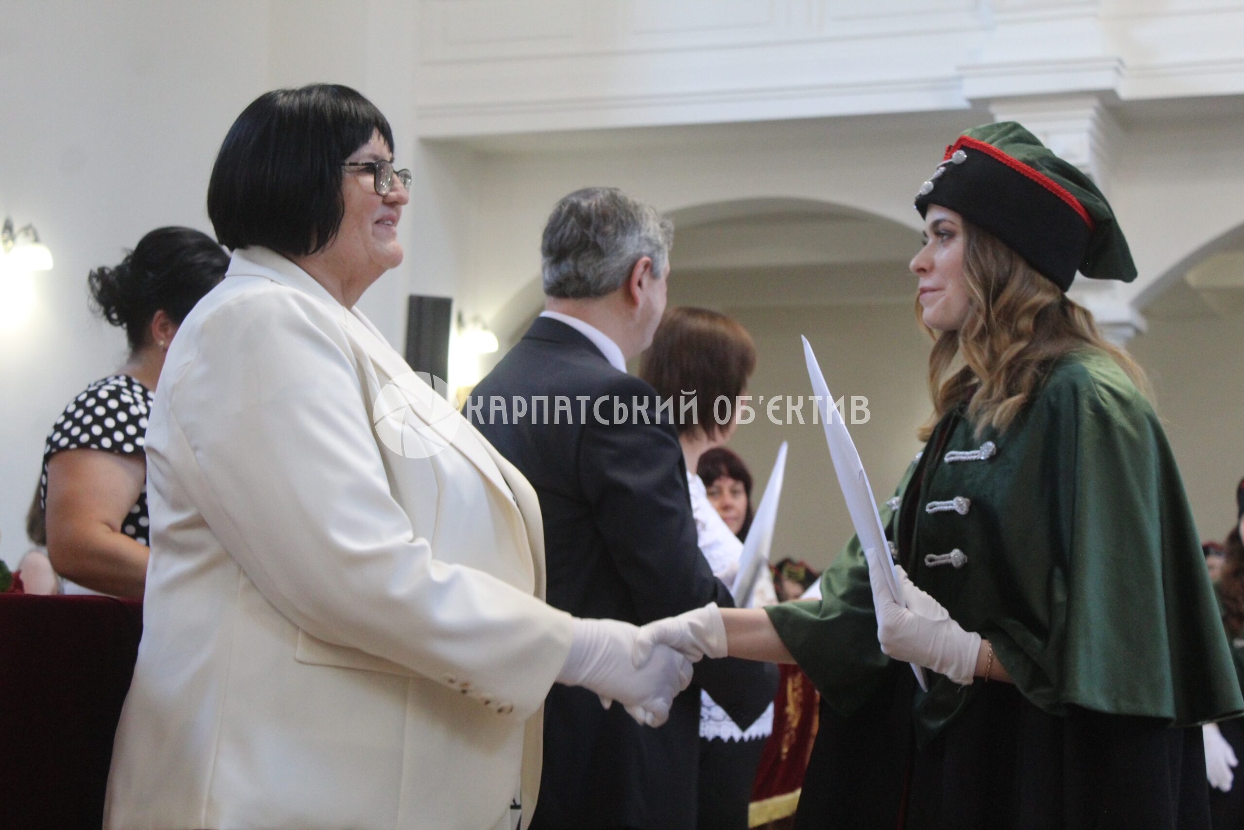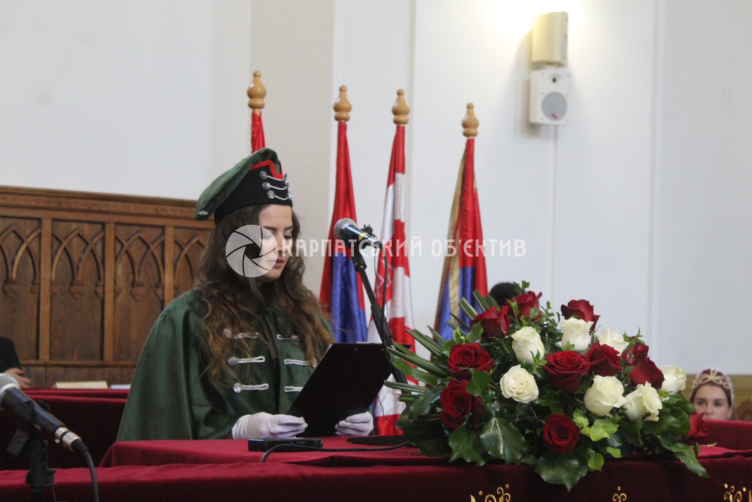 Від імені випускників подяку висловила Клаудія Барта, студентка спеціальності «Англійська мова та література», а текст студентської присяги зачитала Андреа Леврінц. Після цього випускники отримали дипломи з рук президентки інституту Ільдіко Орос та ректора Степана Черничка.