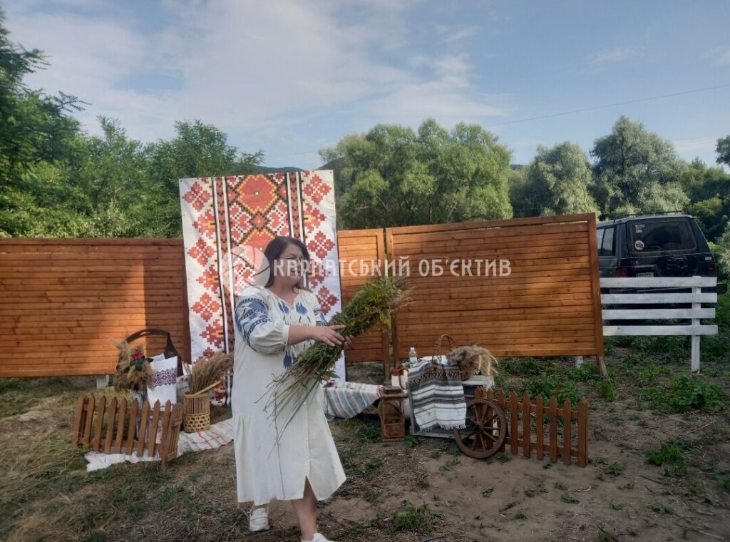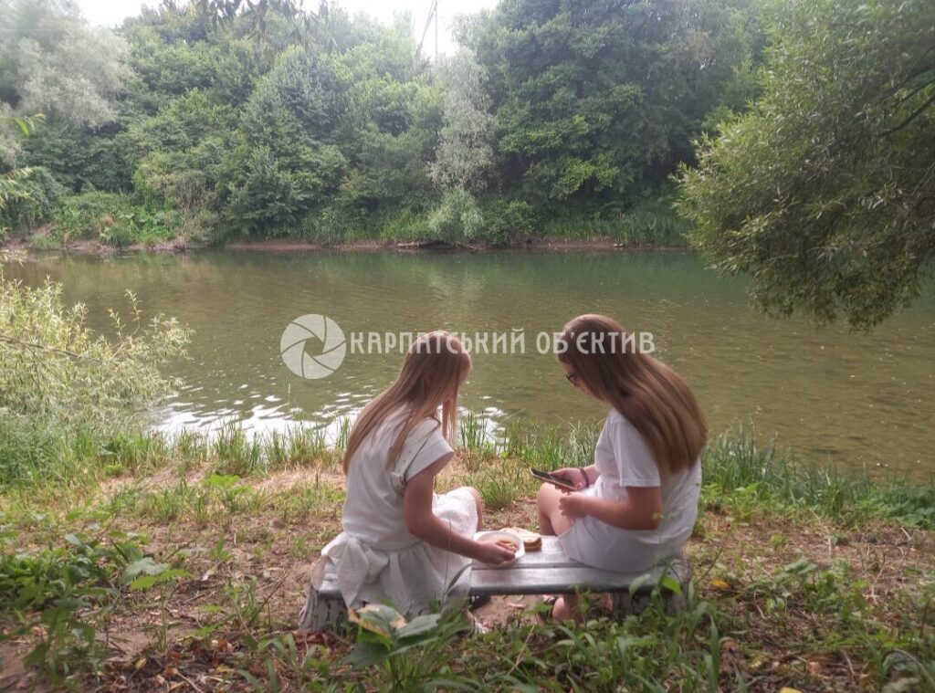 Мою увагу привернула компанія, одягнута в біле – відповідно до дрес-коду. Пані Анна розповіла, що до повномасштабної війни її сім’я проживала в Краматорську: «Війна розкидала нас по світу. Я певний час жила в Києві, потім переїхала до Ужгорода, бо тут безпечніше. Моя донька приїхала до мене зі своїм хлопцем з Німеччини. Раніше вони не були на Закарпатті. Ми прочитали анонс про подію в Перечині, зібрали, сіли в авто і приїхали сюди. Уже відвідали Лавандову гору, тепер завітали на відкриття зони відпочинку та свято Івана Купала».