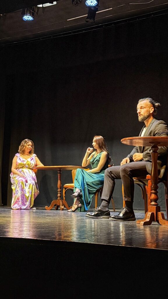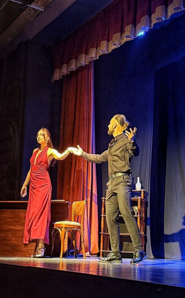 «Дар’я Піріч написала п’єсу півтора роки тому. Я ж їй допомагаю реалізовувати себе у драматургії, тож ми співпрацюємо. Наприклад, прошу її написати твір на 5-6 дійових осіб і вона над ним працює. Потім ми зустрічаємося, вносимо правки у текст, обговорюємо деталі. Тобто, ця п’єса була створена не просто так, а конкретно для того, аби ми її поставили у нашому театрі. Ми її декілька разів корегували і вийшло те, що наразі глядач може побачити, – розповів «Карпатському об’єктиву» керівник студії Любомир Геляс. – Зараз Дар’я має багато п’єс і в неї є змога творчо реалізовуватися й на інших майданчиках. Загалом вона є вихованкою моєї студії й наразі – самостійна мисткиня, яка має навіть власну театральну студію». Між іншим, для більшості акторів «Спіймати Колібрі» стало дебютом. «У нас багато акторів із числа тих, хто свого часу переїхав до Ужгорода – хтось ще до, а хтось – уже під час повномасштабного вторгнення, – додав Любомир. – Загалом маємо людей практично з усієї України. У них різна освіта і вони працюють у різних сферах. Є, скажімо, психолог, художниця, іміджмейкер… І вони всі добре реалізовані у житті, а в театрі знаходять для себе віддушину. Режисер Микола Стефаник є дипломованим професійним актором, випускником театрального університету імені Карпенка-Карого», – поділився враженнями про виставу і Дмитро Велікі (у п’єсі – Еліот Хосе) – єдиний із акторів, хто на сцені виступав не вперше. «Таких емоцій, як інші колеги по «цеху», не відчув, бо це вже не перша вистава, у якій довелося грати. Крім того, моя діяльність, як ведучого різних подій, пов’язана з виступами, – зазначив він. – Але мені було приємно, що подивитися на «Спіймати Колібрі» прийшло багато людей, що вони вболівали за акторів та за героїв, яких ми грали. Репетиції проходили з березня минулого року. Цю роль, яка дісталась мені, мав виконувати інший актор, але в нього щось трапилося і режисер запропонував мені. Таким чином, я долучився десь наприкінці січня – на початку лютого». Загалом події у виставі відбуваються у одному з готелів. Там сталося вбивство жінки. Починається пошук злочинця, який скоїв непоправне. І тут розгортається ціла драма. Розв’язка вражає несподіванкою, а саме дійство яскравістю. Було очевидно, що всі актори закохані у свою справу і живуть нею.