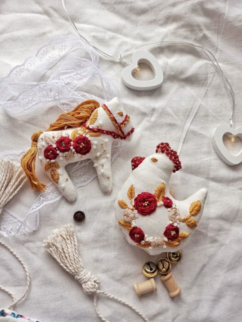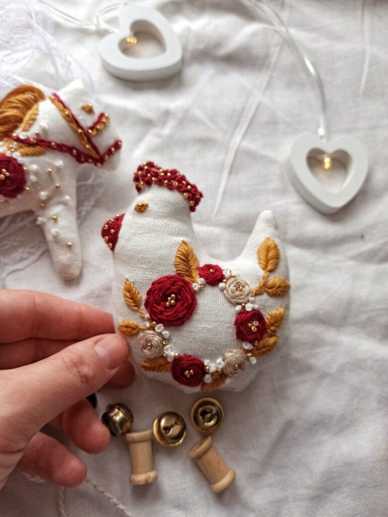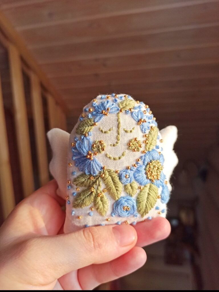 «Я завжди любила вишивку. Це – код нашої нації, наш внутрішній світ, наша ідентичність. Вишивали ми з бабусею, бо моїм вихованням здебільшого займалася вона. Батьки завжди були зайняті, на роботі. Я приходила зі школи, робила домашні завдання і ми з бабусею бралися за голки та нитки. У 15 років сама вишила собі вишиванку. Пошила її бабця. Але я душе пишалася коли одягала цю сорочку. Шити, між іншим, теж навчила мене вона. Проте захоплення з часом переросло в заняття, яке ще й приносить мені хоч і невеликі, але прибутки. Три роки тому, коли завагітніла, звільнилася з роботи. Далі народилася Олександра і мені захотілося зробити своїми руками для неї якусь безпечну іграшку. Знайшла в інтернеті викрійку янгола і пошила його. Та він мені здався не зовсім довершеним. Тому вирішила ще й розшити його червоними нитками. Результат настільки сподобався і мені, й чоловіку, що я вирішила, що й далі творитиму в такому стилі», – зізналася «Карпатському об’єктиву» майстриня.