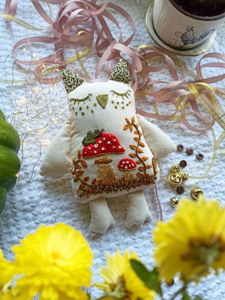 Аделіна Корпош із Мукачева не просто шиє іграшки, але й вкриває їх об’ємною вишивкою. Найчастіше це квіти, але можуть бути й інші узори. Каже, що це – вироби не для дітей, а дизайнерські, для дорослих, однак малеча може ними впевнено бавитись, бо всі компоненти з натуральних матеріалів і антиалергенні. На ляльках відсутні ґудзики, накладні очі, маленькі пришиті деталі. Усе з ниток, тож проковтнути дитина також нічого не може. Більше про своє захоплення умілиця розповіла «Карпатському об’єктиву».