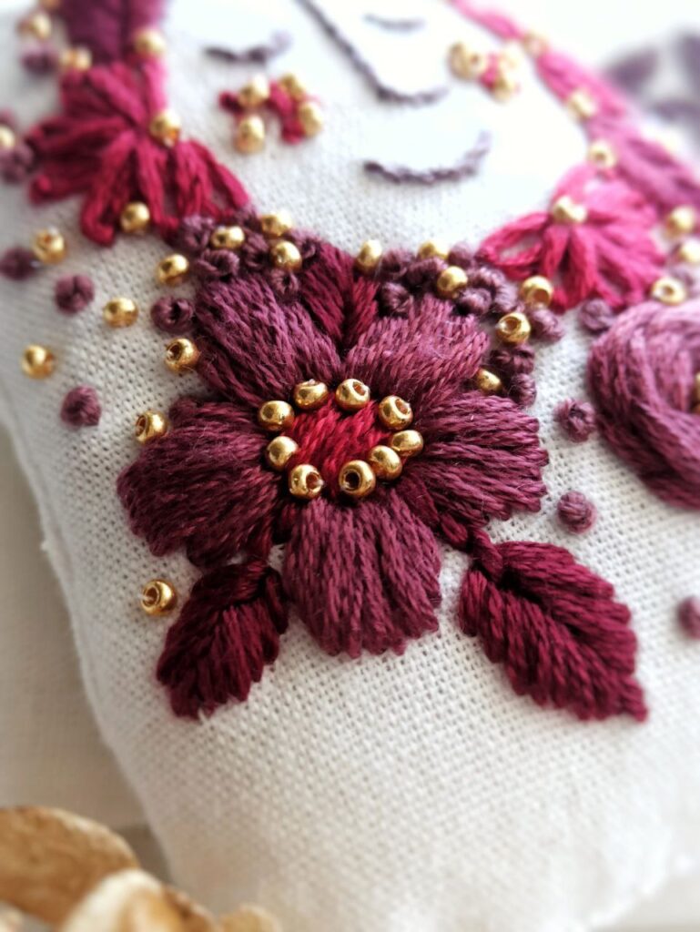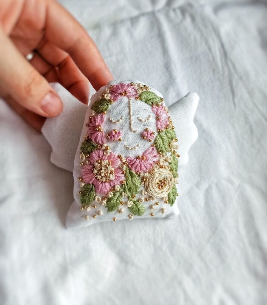 «Зразки для вишивки я можу придумати сама і намалювати на папері. Відтак переношу на тканину. Я завжди непогано малювала і в цьому знайшла свої бонуси. Надихнути може букет на столі, або квітка в саду сусідів, рослинка у парку чи на вулиці. Коли гуляю з дитиною, завжди уважно роздивлюся довкола, милуюся красою природи. Коли ж працюю над ескізом, звертаю увагу на найтонші деталі. Між іншим, об’ємна вишивка набагато складніша, ніж, скажімо, хрестик чи гладь. Але й ефект більше вражає. Саме ботанічні композиції виходять більш реалістичними і вишуканими. Тож мої янголи, птахи і тваринки заквітчані та дарують людям позитивні емоції», – наголошує Аделіна.