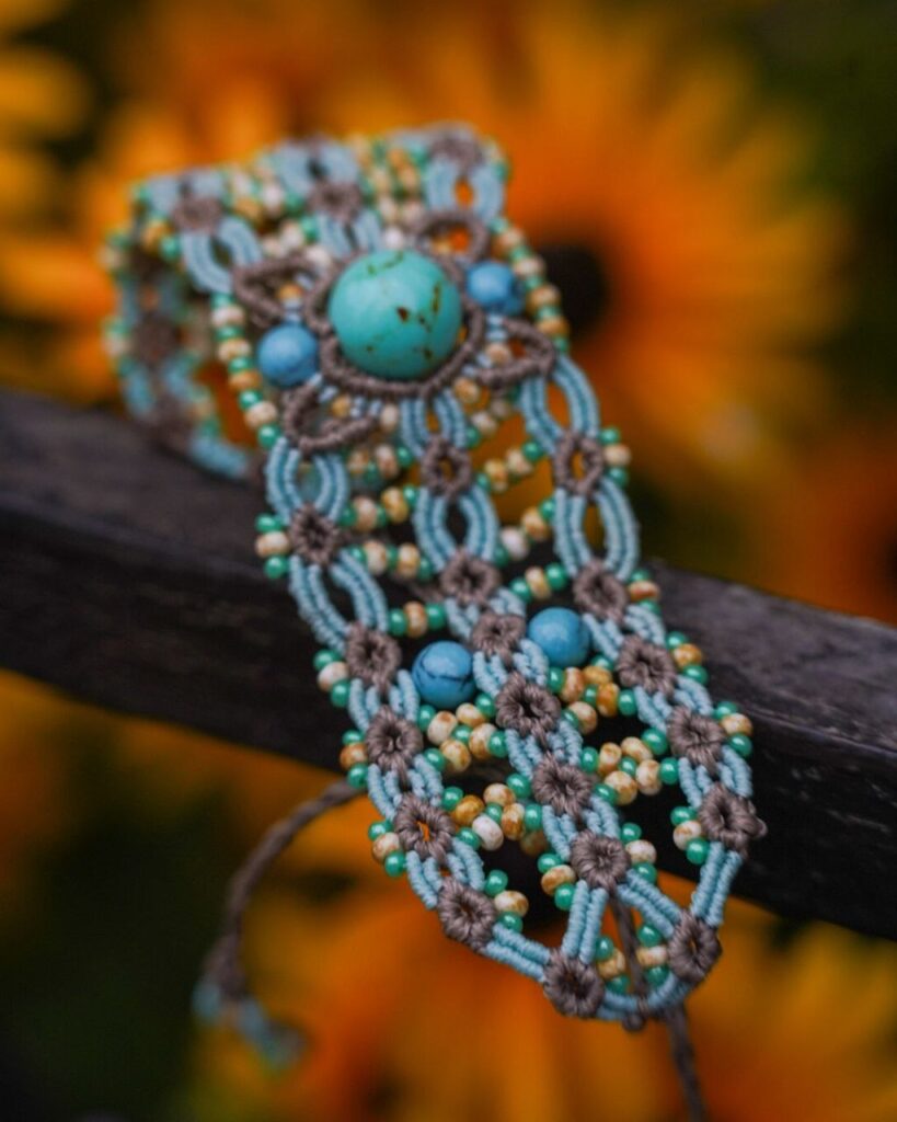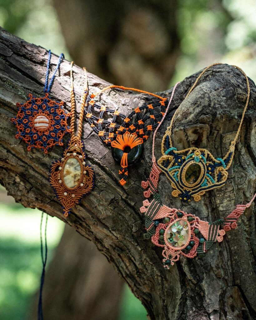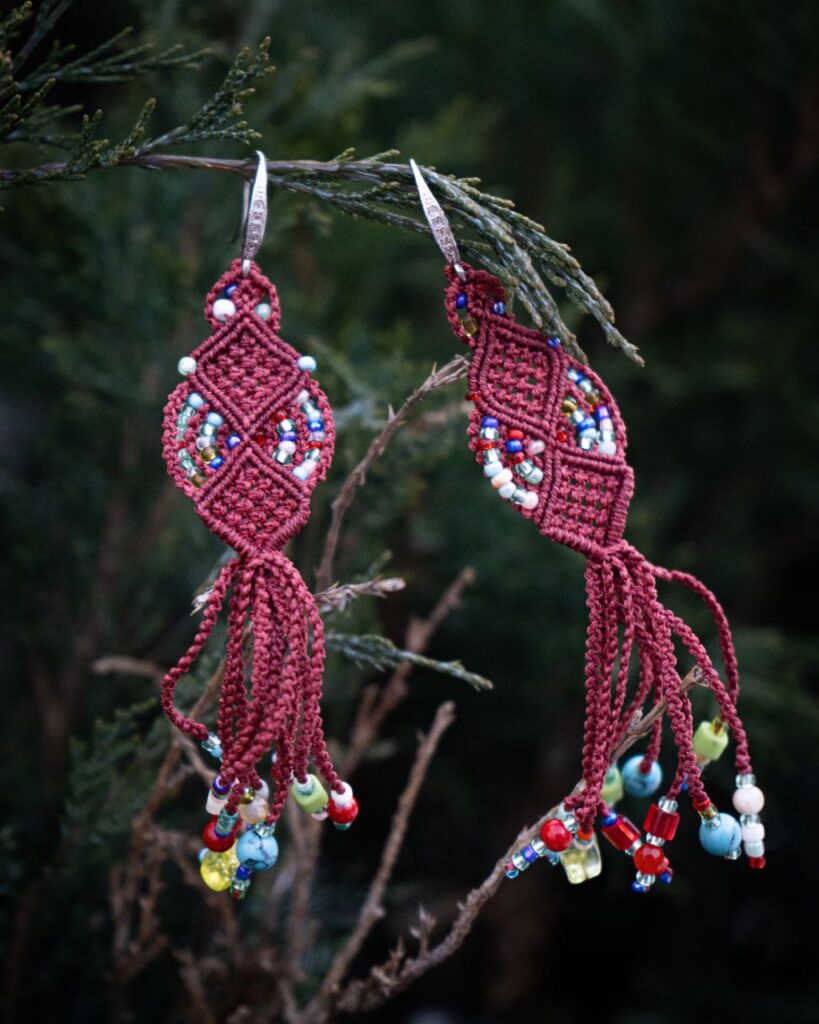 «Прикраси я створюю із ниток та намистин. Придумую їх і виплітаю узори у техніці макраме. Плести мене вчила колись у дитинстві бабуся подруги. Вона була великою рукодільницею, вміла і в’язати спицями та гачком, і шити, і ткати килими, і вишивати, і багато іншого. Тоді, ще малими, ми з нею та з Оксаною плели дитячі браслети. Тож про те, що за допомогою вузликів і міцної пряжі можна створювати настінні композиції та кашпо для квітів дізналася набагато пізніше. Тому якось із початку для мене в уяві макраме асоціювалося саме з прикрасами. Звісно, плетіння професією не стало. Навіть більше, на багато років про рукоділля я забула. Займалася виключно зароблянням грошей та дітьми», – поділилася умілиця думками з «Карпатським об’єктивом».