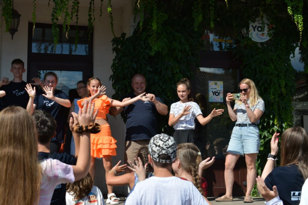 На закритті табору «YO-camp» діти також мали ряд незабутніх розваг. До них долучилися навіть дорослі. А після спільного фото на згадку малеча мала змогу поласувати піцою і потанцювати.