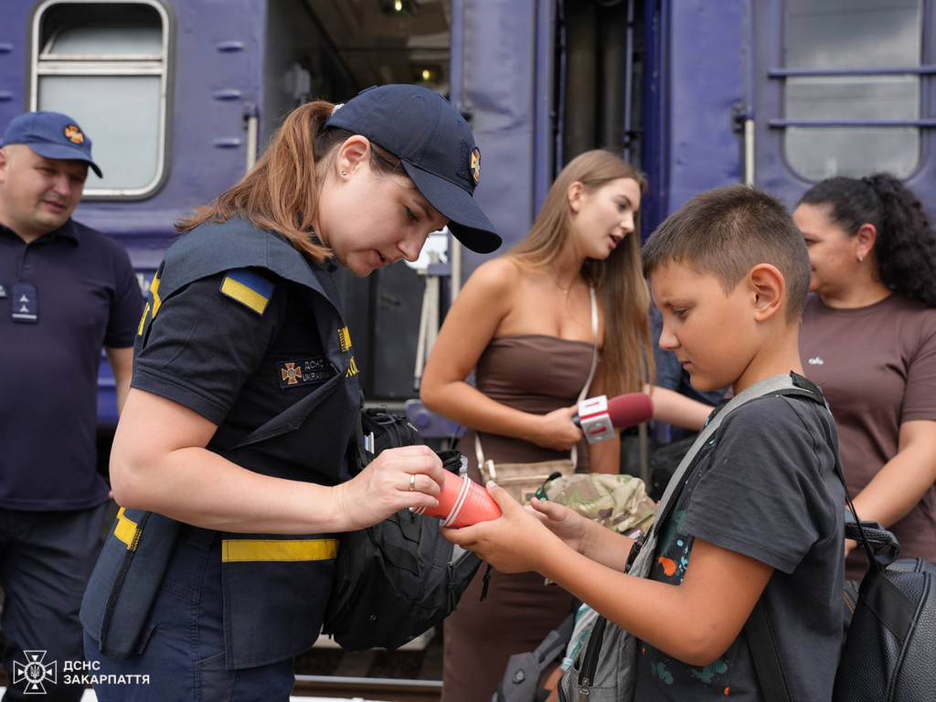 На пероні у Мукачеві сім’ї зустріли рятувальники, психологи ДСНС та волонтери. Вони допомогли з особистими речами, надали психологічну підтримку та забезпечили комфортну пересадку для подальшої подорожі до місця тимчасового проживання.