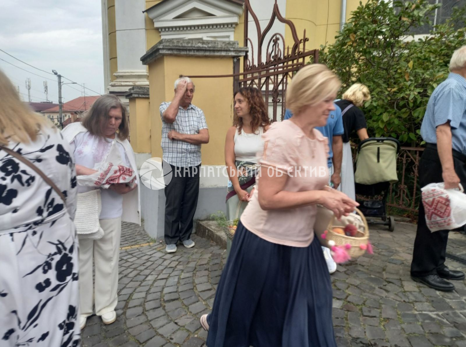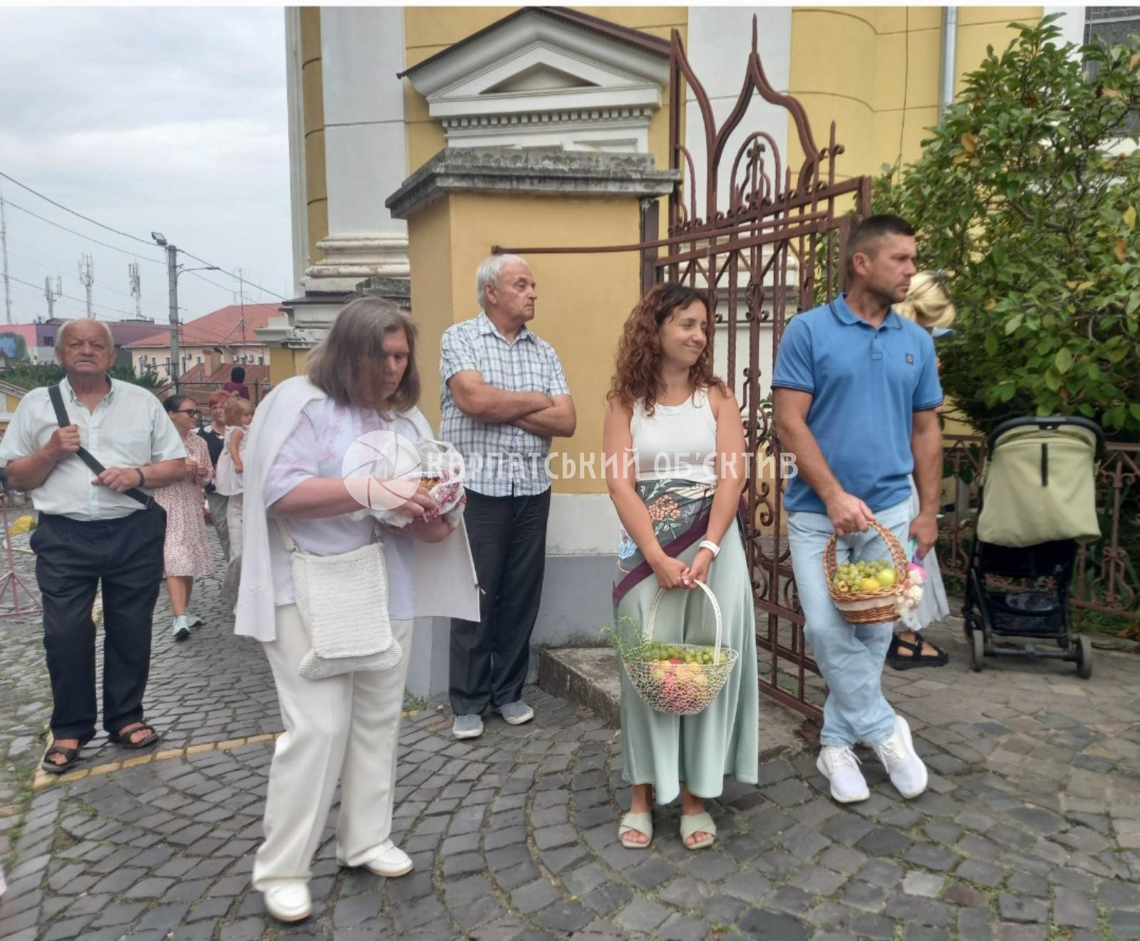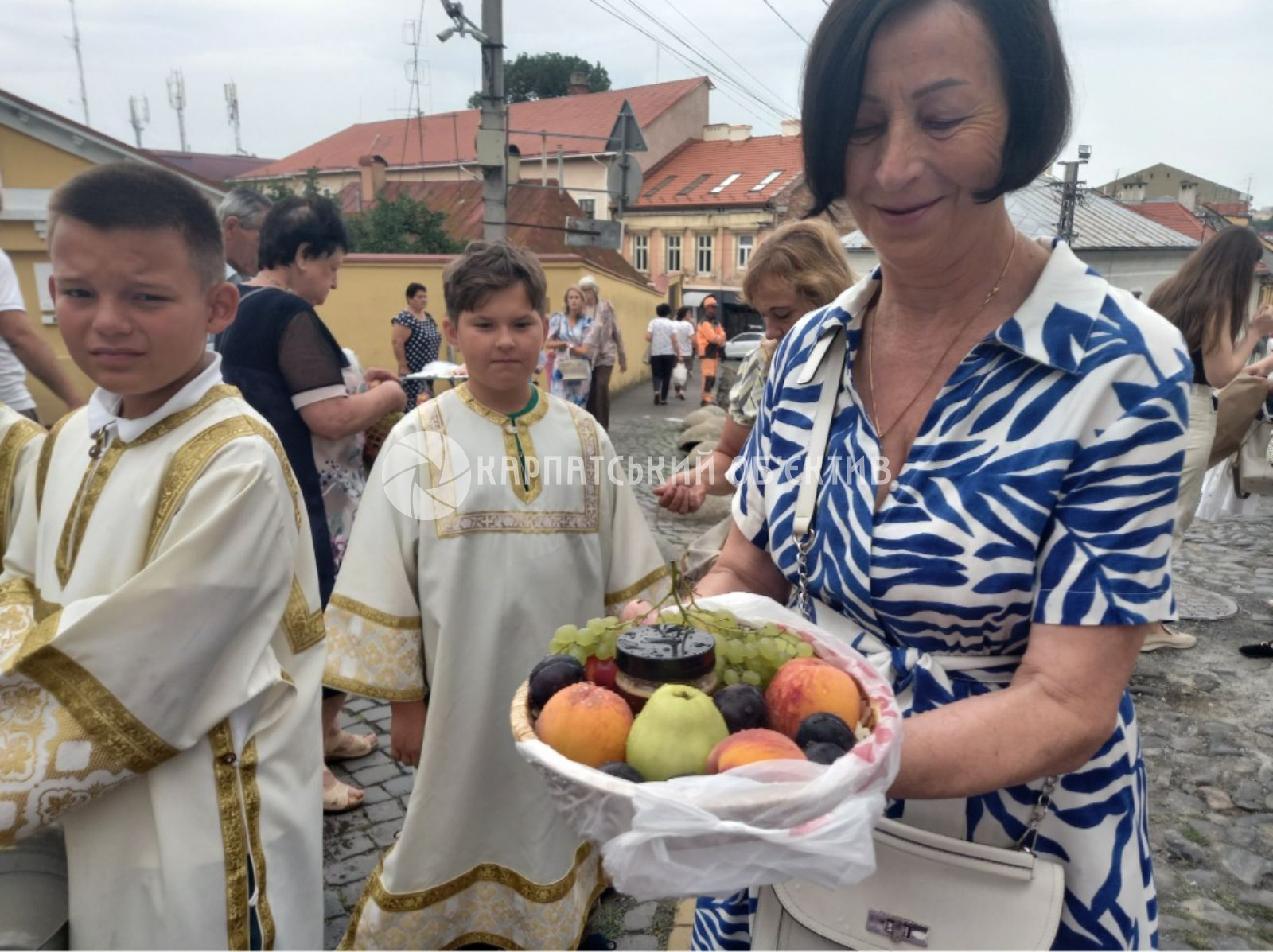 Після кожної Літургії (студентської, старослов’янської, української) в Ужгородському Хресто-Воздвиженському греко-католицькому соборі священники освячували плоди, які вірники принесли у кошиках чи целофанових пакетах. А це були яблука, груші, персики, сливи, грона винограду, помідори, огірки, качани кукурудзи. Дехто з людей дотримується думки, що це Яблучний Спас, тому до кошика треба ставити тільки яблука. А ще – виноград.
