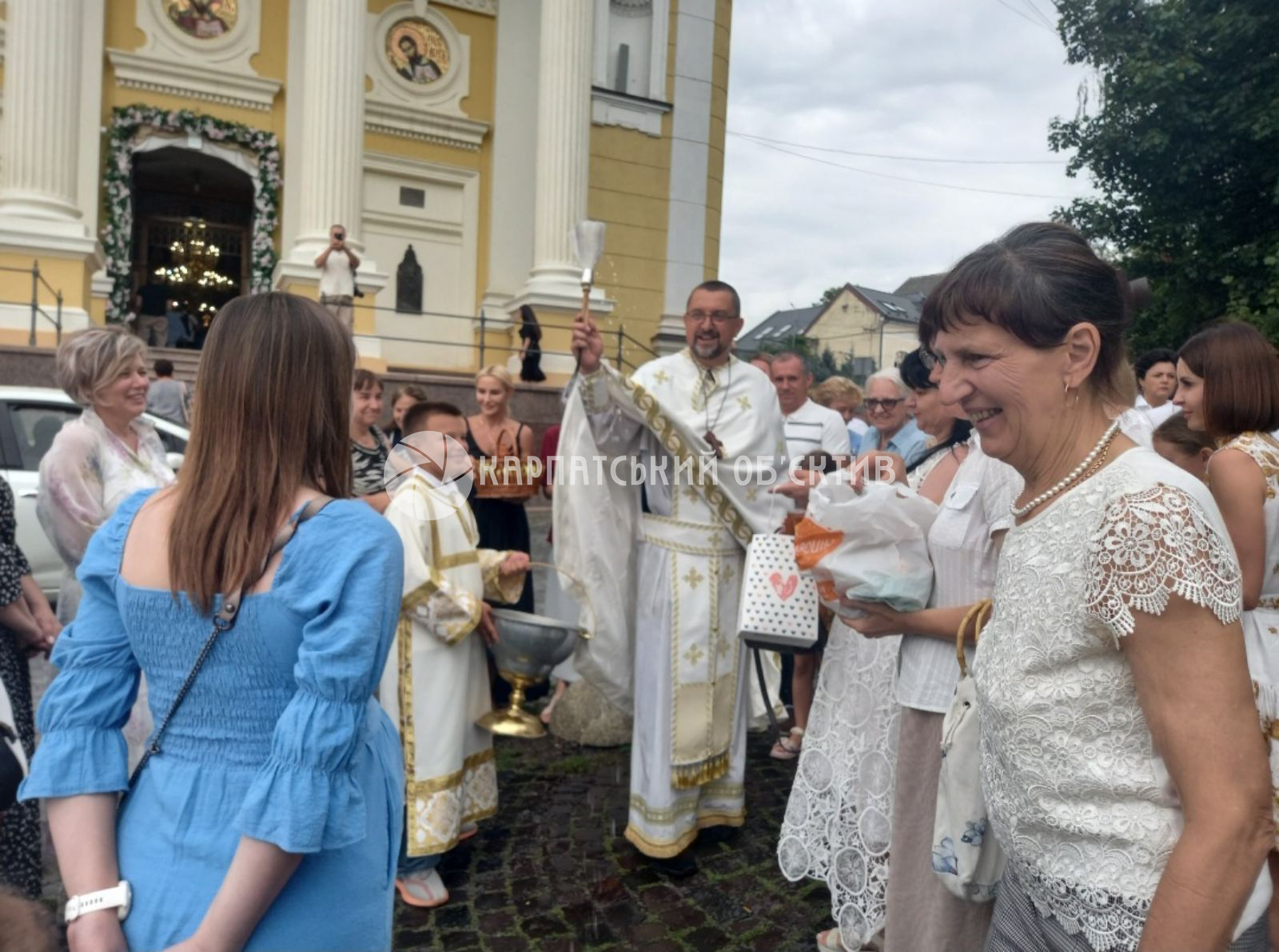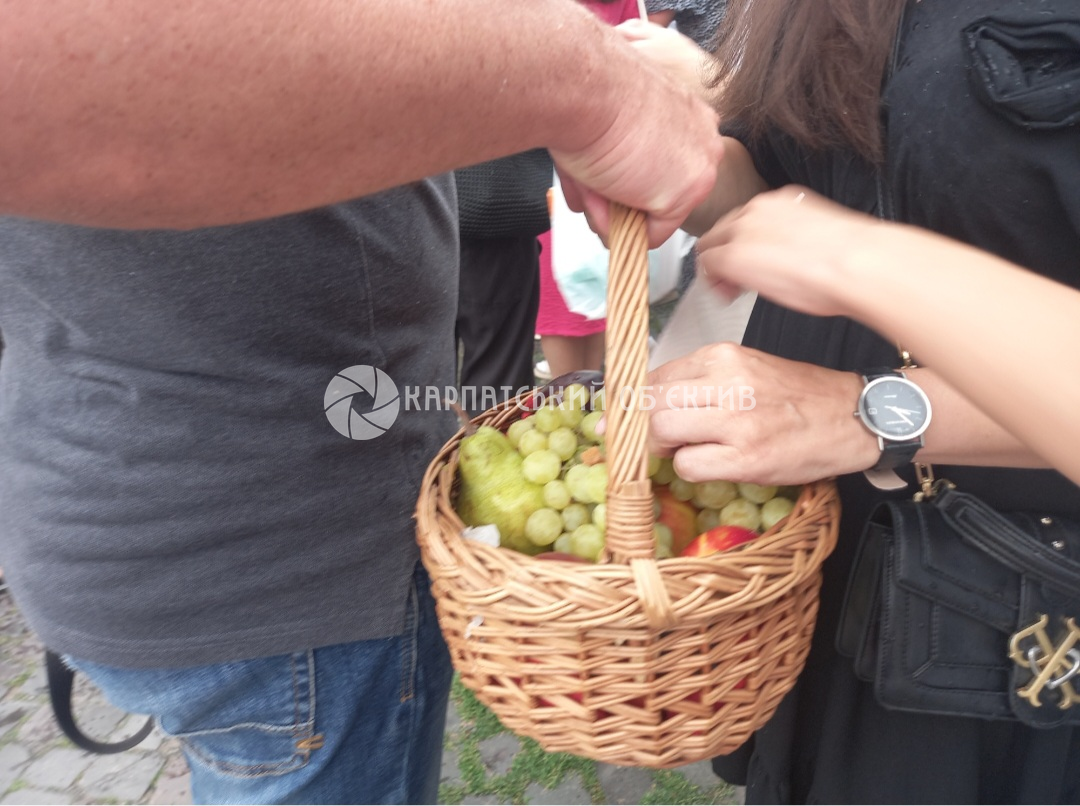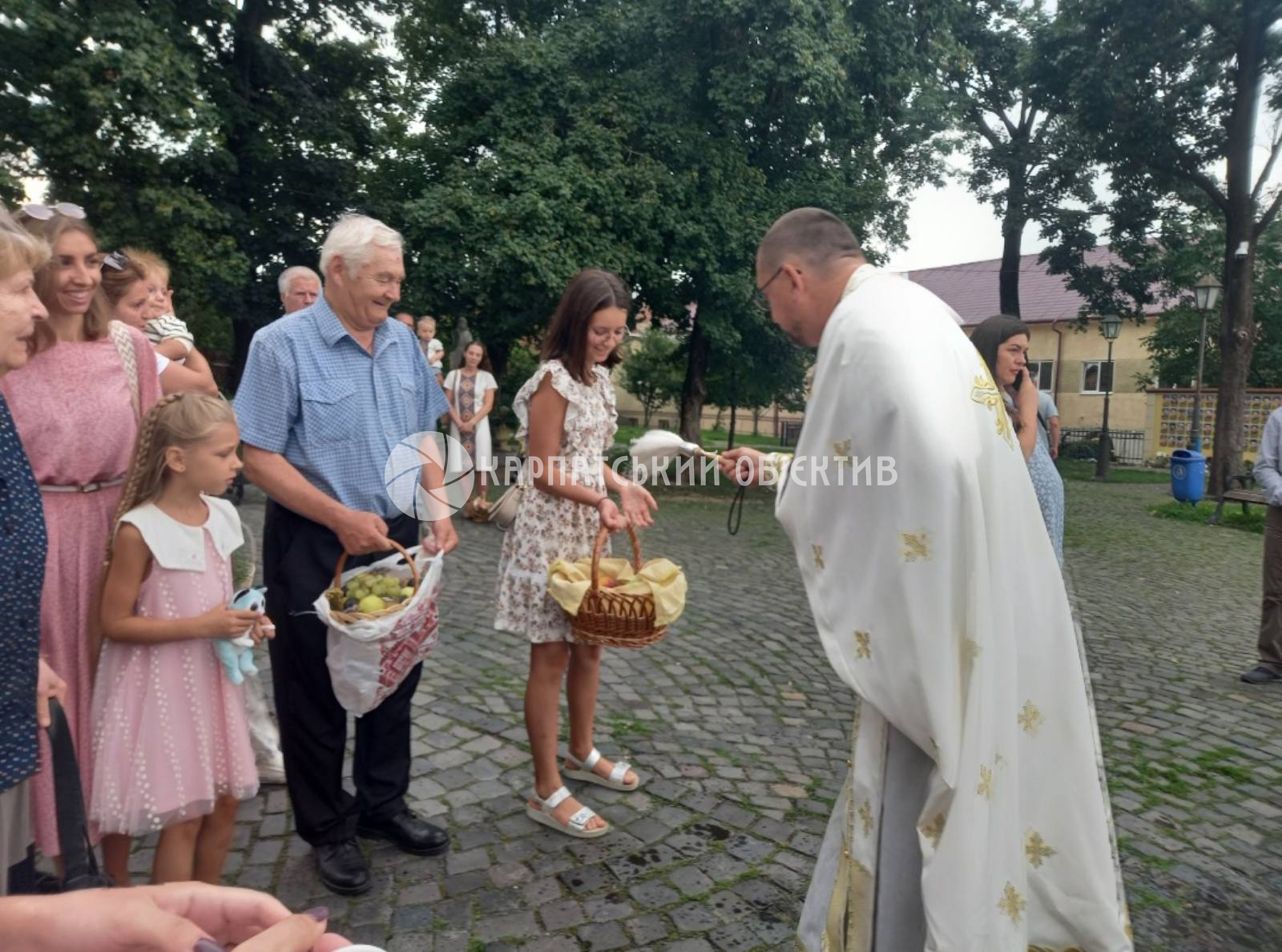 Після кожної Літургії (студентської, старослов’янської, української) в Ужгородському Хресто-Воздвиженському греко-католицькому соборі священники освячували плоди, які вірники принесли у кошиках чи целофанових пакетах. А це були яблука, груші, персики, сливи, грона винограду, помідори, огірки, качани кукурудзи. Дехто з людей дотримується думки, що це Яблучний Спас, тому до кошика треба ставити тільки яблука. А ще – виноград.