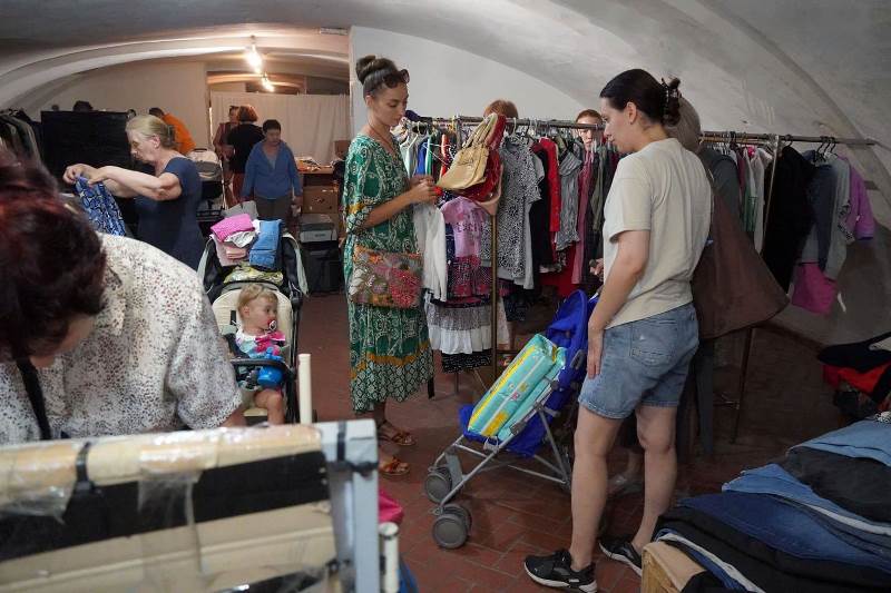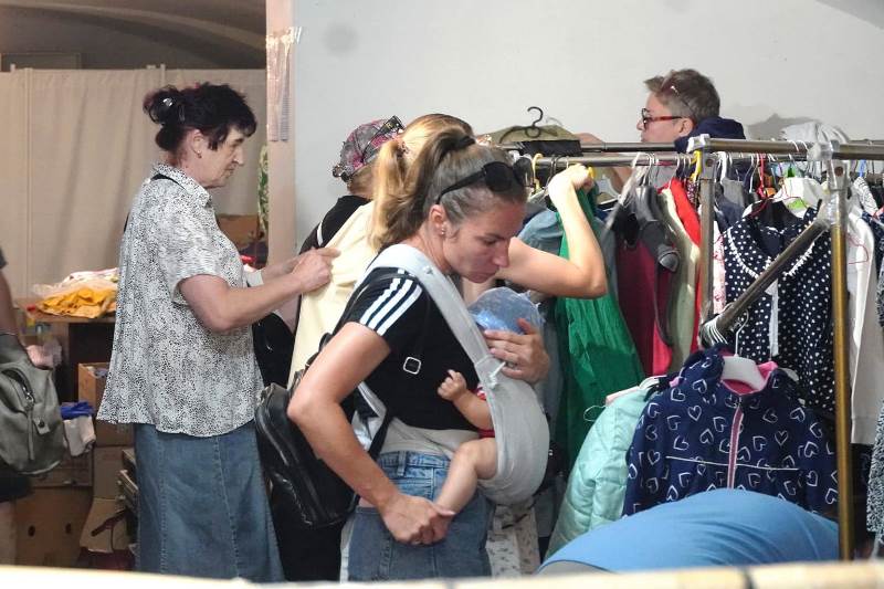 Протягом тижня волонтери видавали одяг, взуття, постільну білизну та посуд (загалом 1970 одиниць).