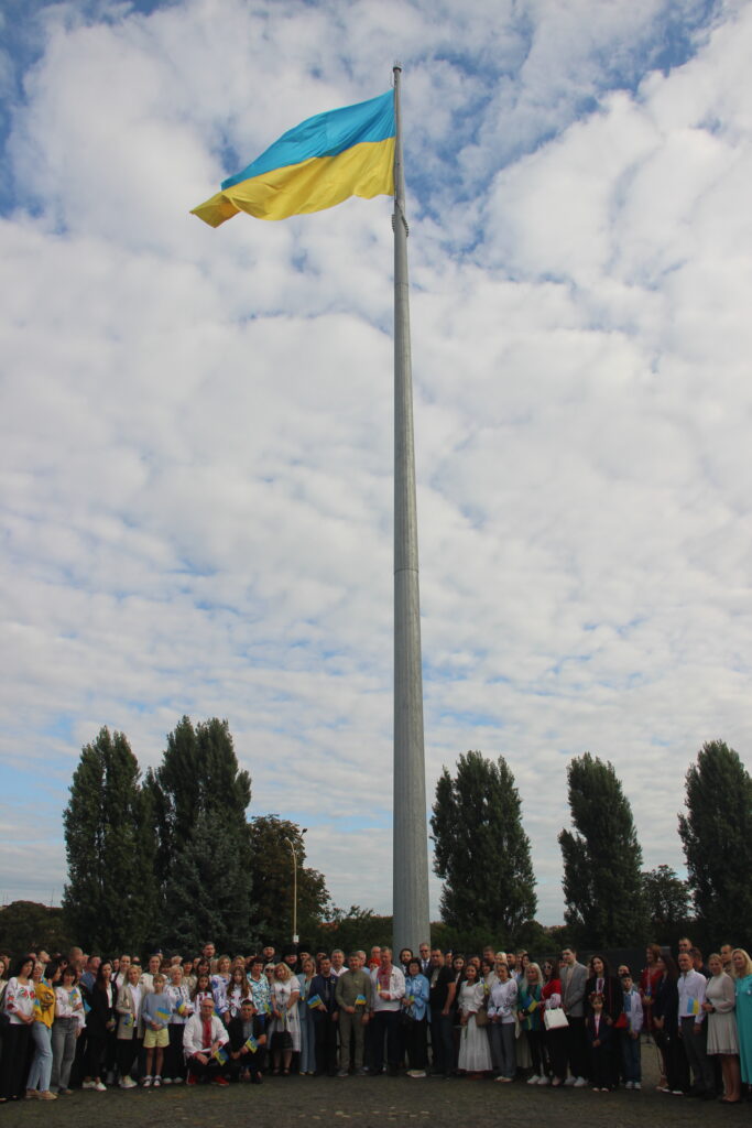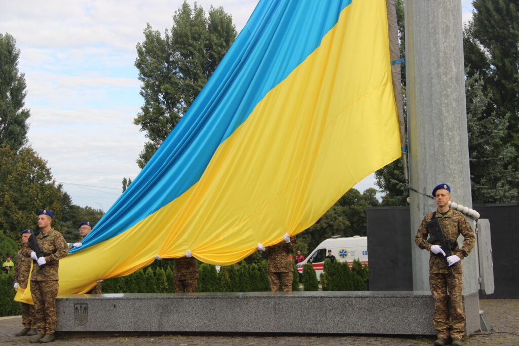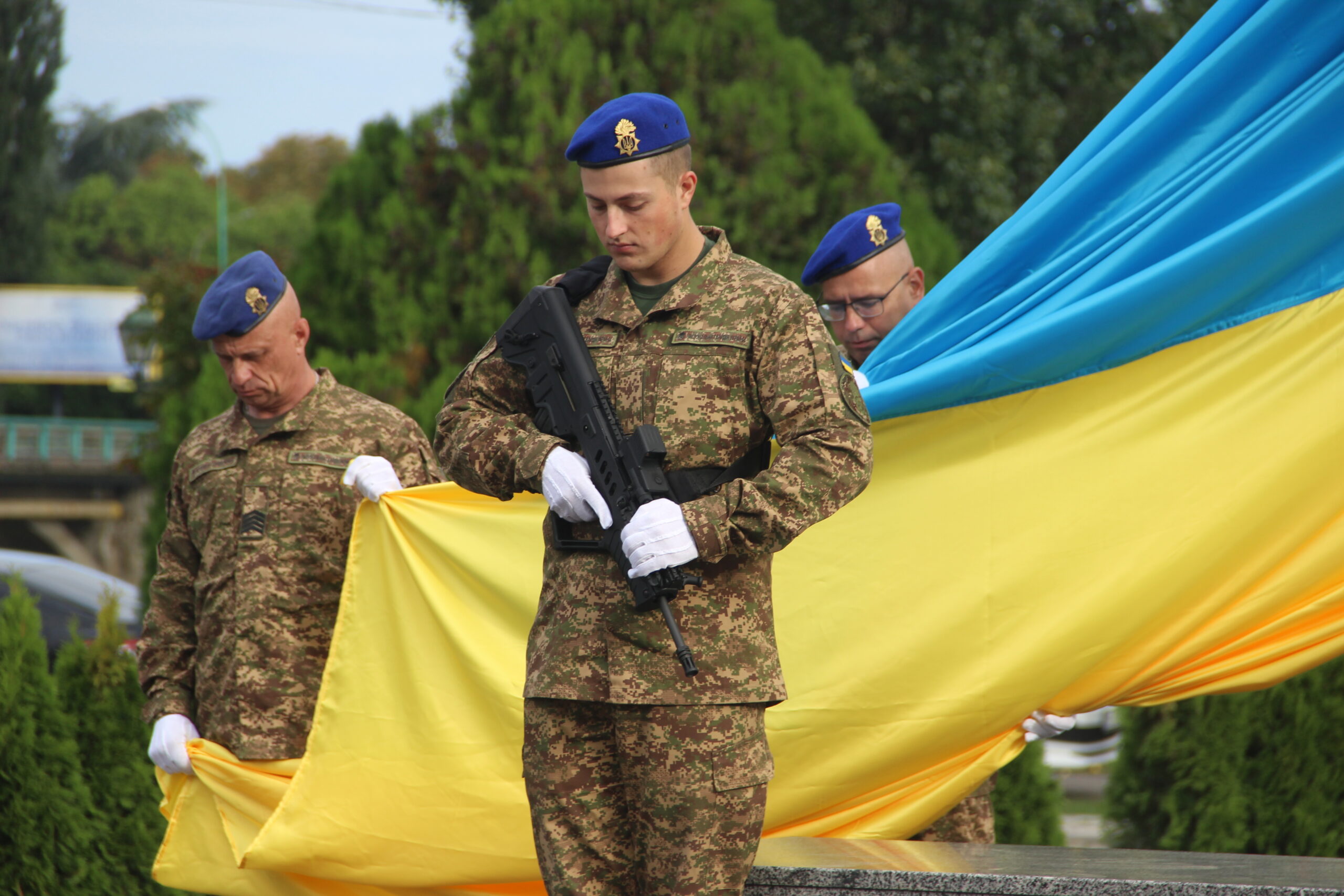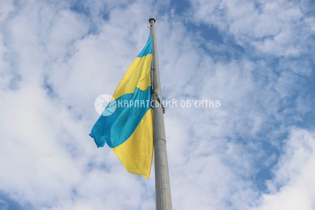 Після цього, під звучання Державного Гімну, військовослужбовці підняли синьо-жовтий стяг на найвищий флагшток Закарпаття.