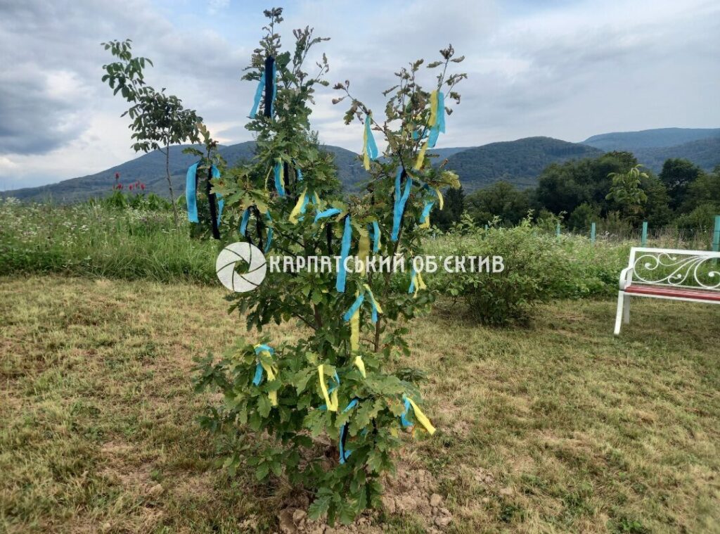 – У п’ятницю зателефонував мені отець Андрій і сказав, що хоче на нашій алейці провести молитву за полеглими героями. Запитав, чи я не проти? Звичайно, що я була «за». Ми маємо завжди пам’ятати, що їхня жертовність – це основа нашої свободи, – зауважила Любов Юріївна. – 29 серпня в Україні відзначається День пам’яті захисників України, а 30 серпня – Міжнародний день зниклих безвісти. У зв’язку з цим у суботу з ініціативи волонтерки Наталії Щобак ми посадили дуб, на гілки почепили символічні стрічки – жовто-блакитні та сині і чорні. Для підготовки було обмаль часу, але ми все встигли. Я зателефонувала батькам, родичам загиблих, колишнім колегам, активним жителям громади, розмістила оголошення у Фейсбуці. Як бачимо, люди прийшли, зокрема молодь і діти. Наталія Щобак принесла букет із живих квітів із соняхами, велику лампадку.