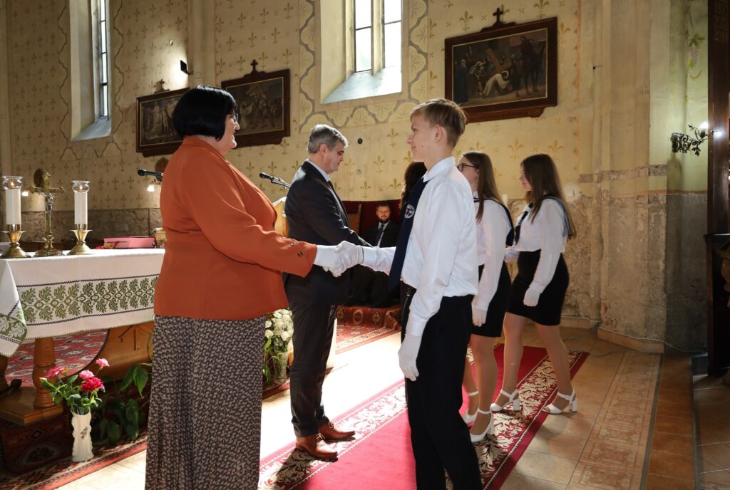 Кульмінаційним моментом урочистостей стала присяга першокурсників. Її текст зачитав учень 10-го класу Бенце Баркасі. Символічним жестом вітання нових студентів стало потискання руки від президентки інституту Ільдіко Орос, ректора Степана Черничка та директорки Каталін Шоош.