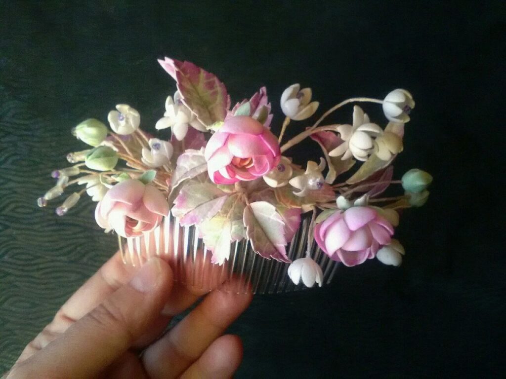 «Лариса була вагітною і мала фото сесію. Замовила у мене віночок. Я мала всього тиждень, а ідей довго не було. Ледве знайшла і потрібну шкіру. Та врешті-решт квіти вийшли бездоганними і подрузі дуже сподобалися. Потім робила віночок для її ж донечки на 1 рік. Це вже були маки та волошки. Для себе найбільшу річ, яку зробила – це ромашкове намисто. Для мами – багато усіляких брошок. Загалом у моєму доробку за чотири роки в межах 200 виробів», – стверджує умілиця.