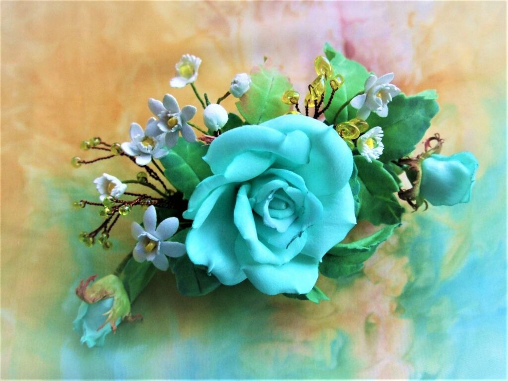 Валентина Фединець із Мукачева вже чотири років поспіль займається творчістю. Зі шкіри вона виготовляє намиста, брошки, приколки для волосся браслети, кулони та багато іншого. Останнім часом захопилася ще й фоаміраном. Вироби майстрині неймовірно реалістичні і переважно це – квіти.