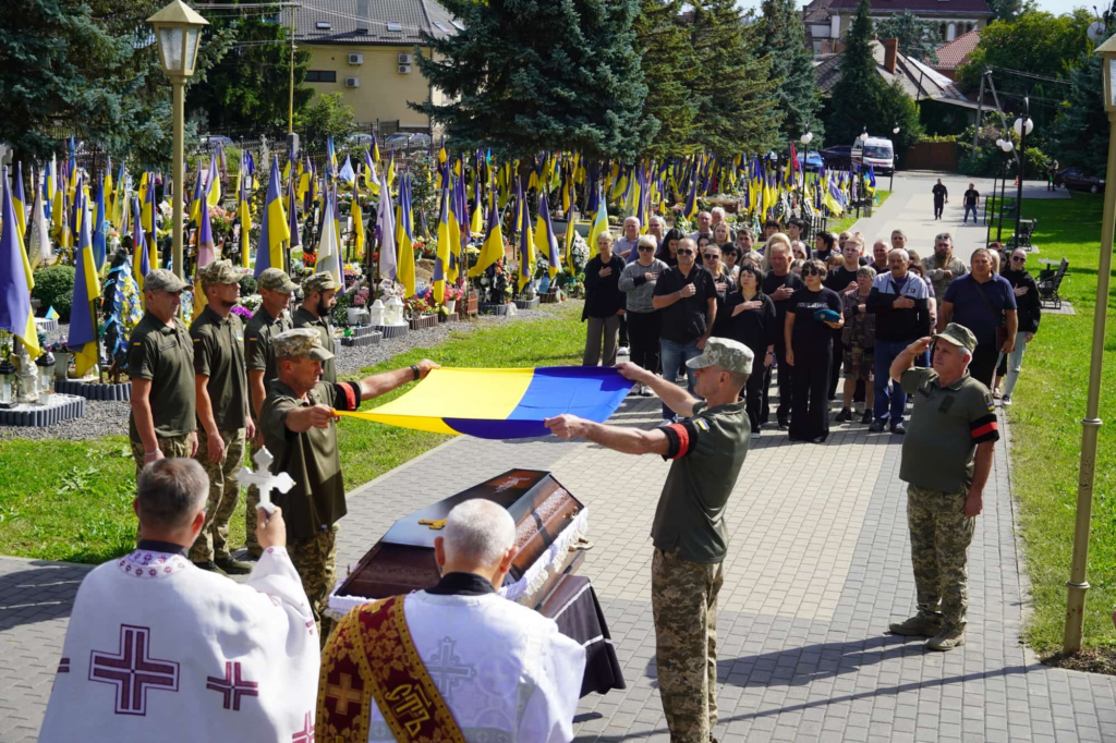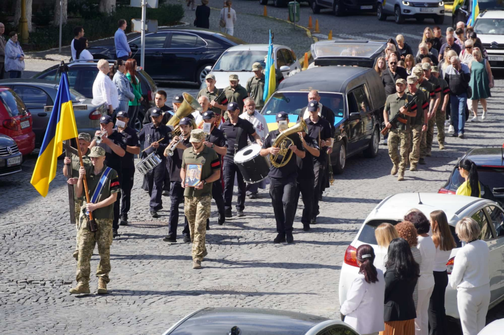 Чин похорону відбувся на набережній Незалежності. Віддати шану воїну прийшли рідні, військові, ветерани російсько-української війни, містяни.
