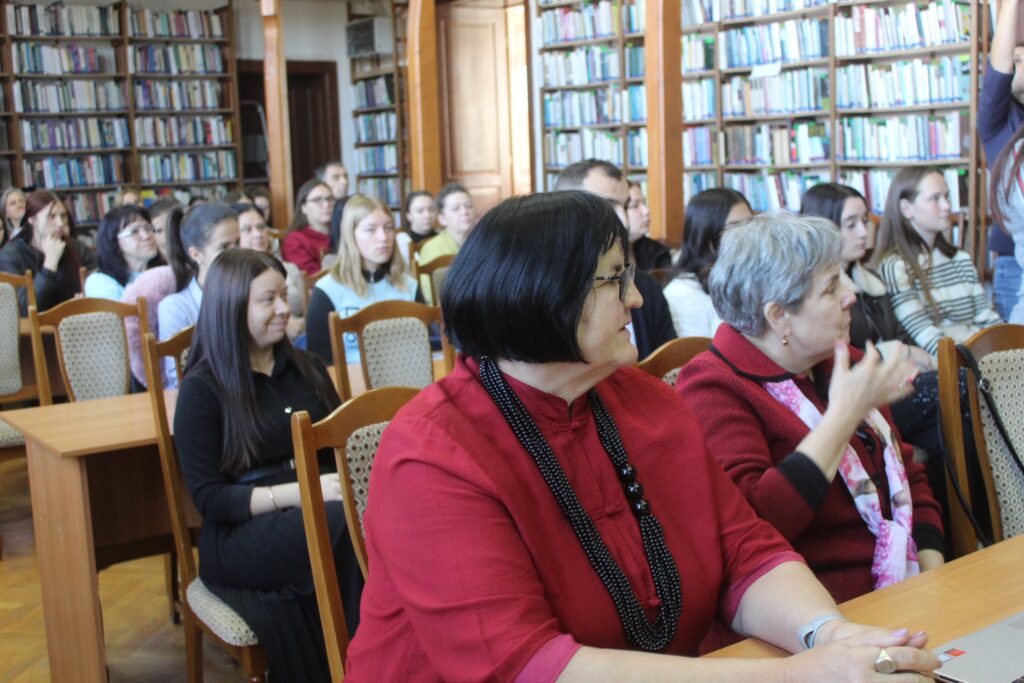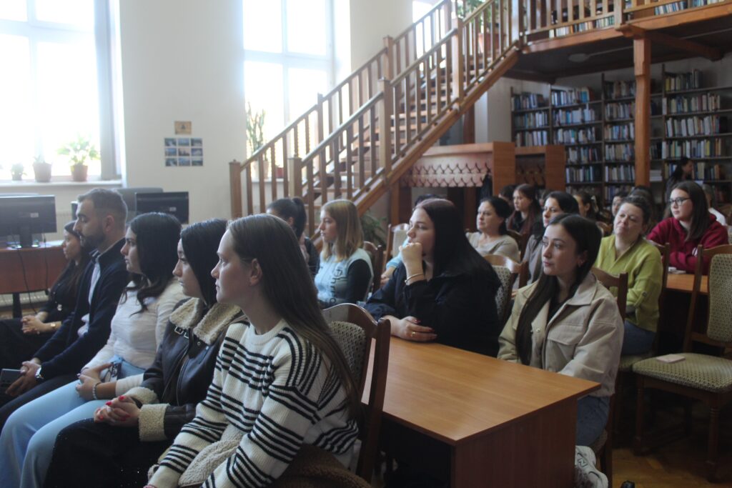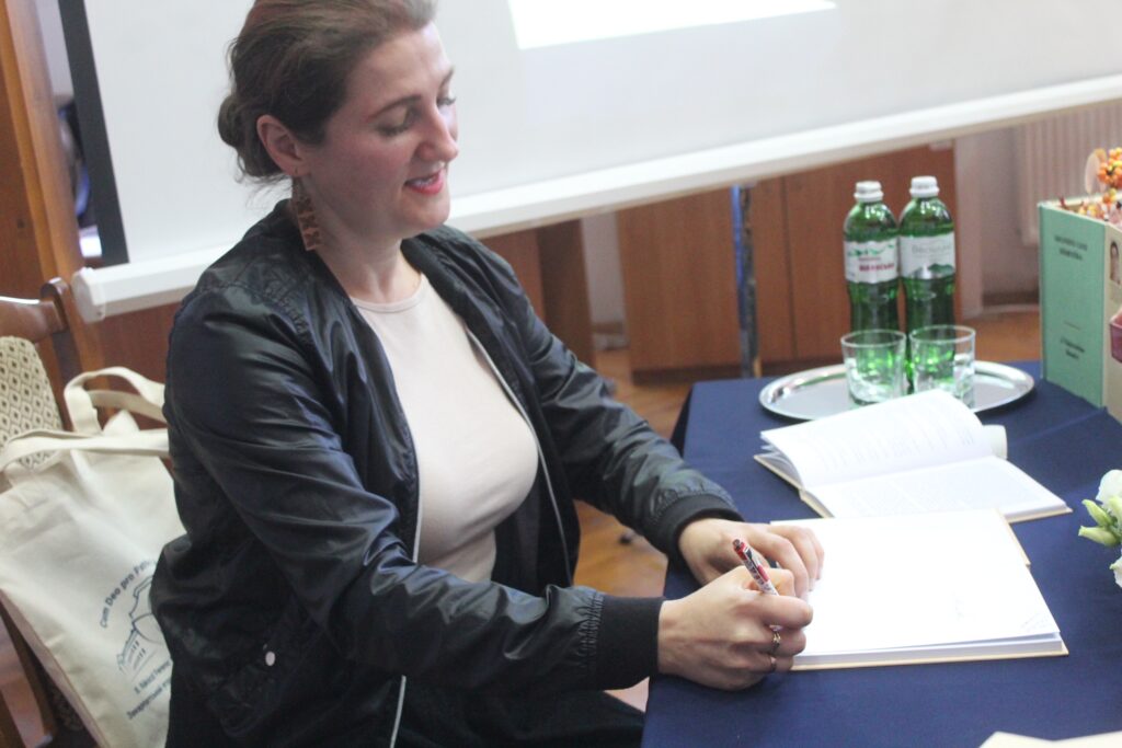 Присутніх привітали керівниця відділу супроводу кар’єри Жужанна Буда та голова Асоціації випускників Гергель Козуб, які подякували письменниці за творчість і побажали нових звершень.