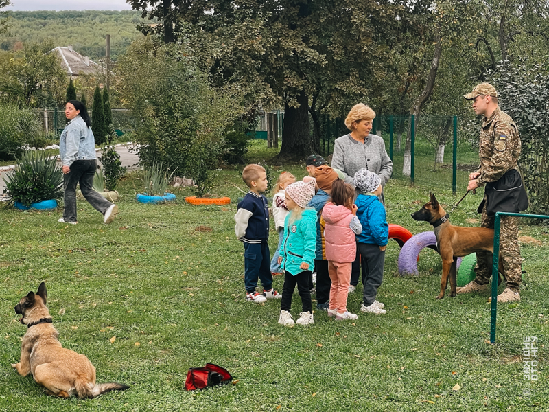 У дошкільному закладі «Сонечко» малечу чекала особлива зустріч: представники служби безпеки дорожнього руху провели заняття з безпеки на дорозі, а кінологи показали своїх чотирилапих помічників. Службові собаки миттєво стали улюбленцями дітей і викликали щирий захват. Найзворушливішим моментом стало те, що малюки передали нашим захисникам власні малюнки – символи підтримки, вдячності та віри у перемогу.