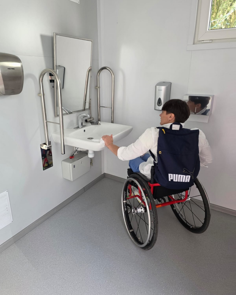 Вбиральня підключена до міських мереж і обладнана сучасною системою оплати карткою. Усередині — дві кабінки: одна звичайна та одна інклюзивна, облаштована з урахуванням потреб людей з інвалідністю.
