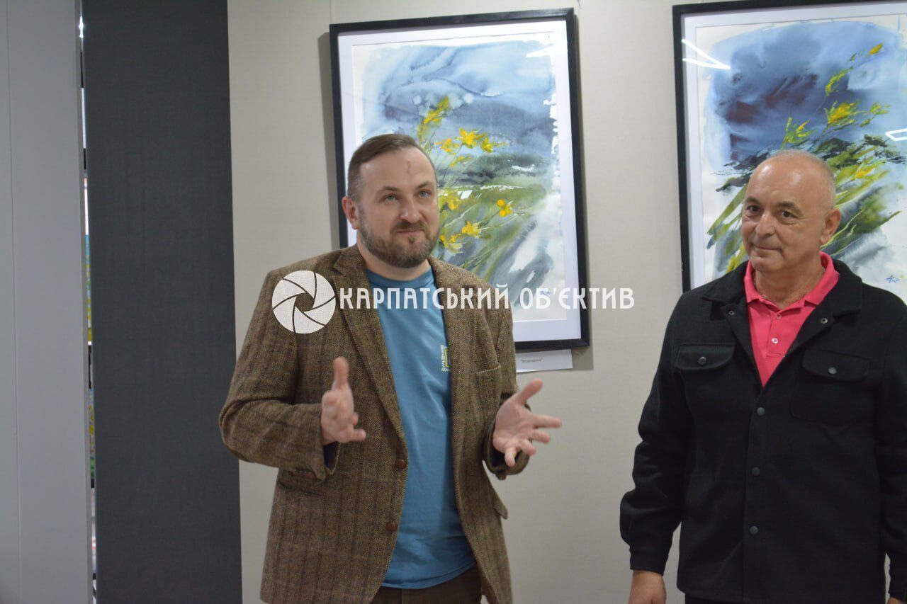 А виставку відкрив голова народного творчого об’єднання художників та народних умільців «Митець Верховини» Валерій Дьордяк. Він привітав колег із професійним святом, побажав усім піднесення натхнення, успіхів у житті і творчості.