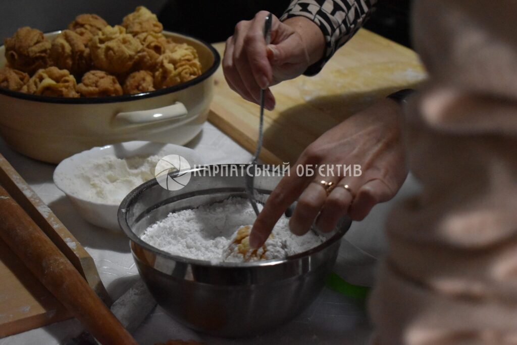 Не обійшлося і без кулінарного задоволення: на кухні готували традиційні «лабдачореге» – солодкі кульки з тіста, обсмажені в олії та щедро посипані ванільним цукром. Аромат свіжоспечених ласощів швидко заполонив усі приміщення. Старші дівчата активно долучилися до приготування: допомагали біля дров’яної пічки, ліпили тісто, смажили. Процес гуртової праці тільки посилив відчуття єдності, а спільна дегустація стала справжнім задоволенням.