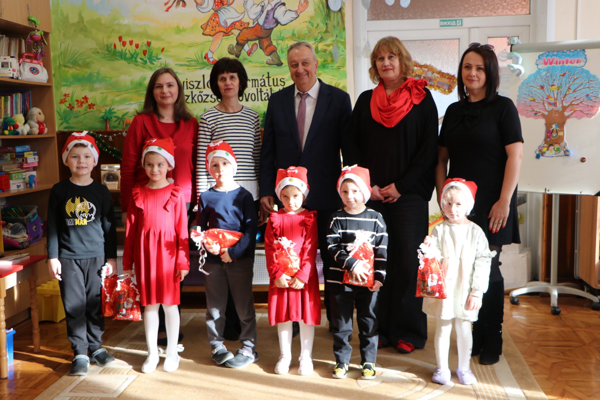 – Ви щойно співали, що Ісус любить дітей, але ми теж любимо дітей. Ми раді, що цього року знову можемо побувати у вашому дитячому садку. Завжди раді чути, як ви гарно співаєте, бачити, як блищать ваші очі, як ви чекаєте на святого Миколая. Я зараз є його посланцем, і ті, хто добре поводився, заслуговують на маленький пакунок, – сказав Ференц Папп, перш ніж вручити подарунки.